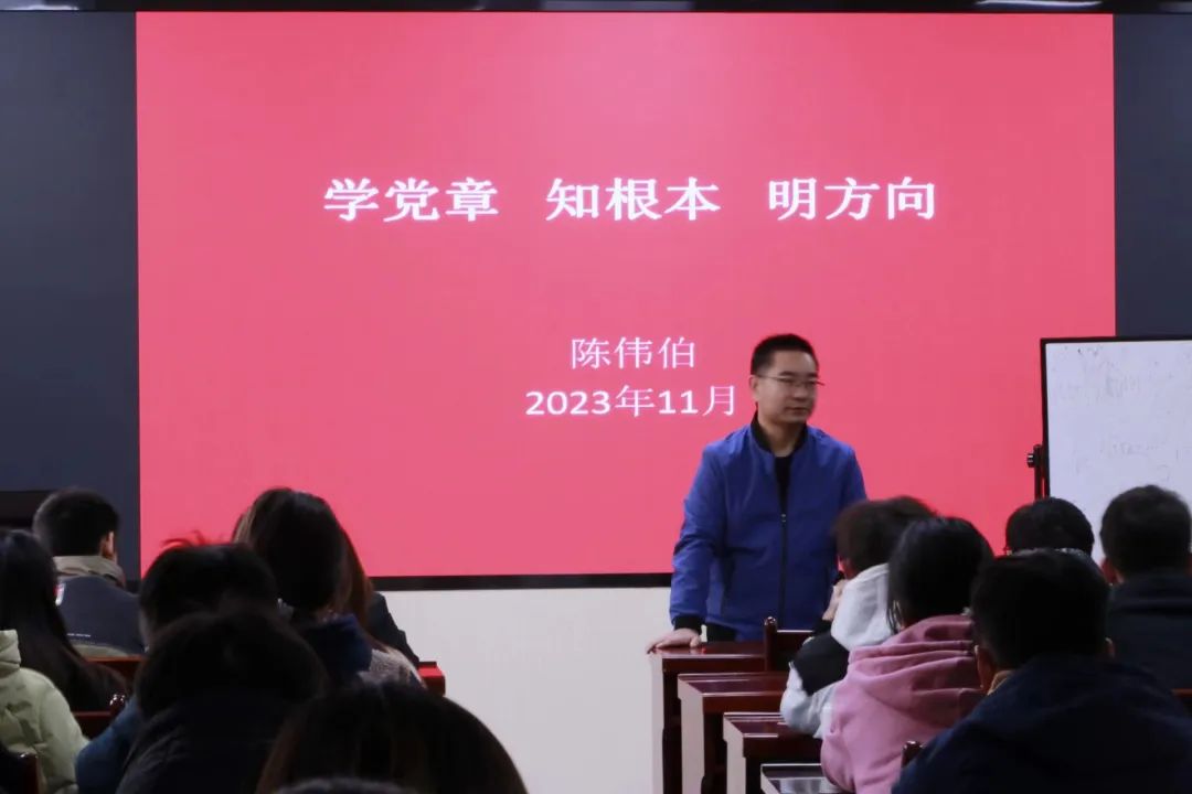 为切实做好入党积极分子的培养教育工作,提高入党积极分子的思想政治素质,充实党员队伍后备力量。太阳成集团tyc122cc于11月12日在220会议室举办了2023—2024学年第一学期入党积极分子培训班第一讲,本次培训主题为 “学党章,知根本,明方向”,由理公司党委副书记陈伟伯主讲。