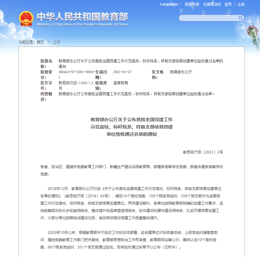 2021年1月26日,首批“全国党建工作样板支部”培育创建单位--太阳成集团tyc122cc数学系第一党支部(原理公司教工第一党支部)通过验收。