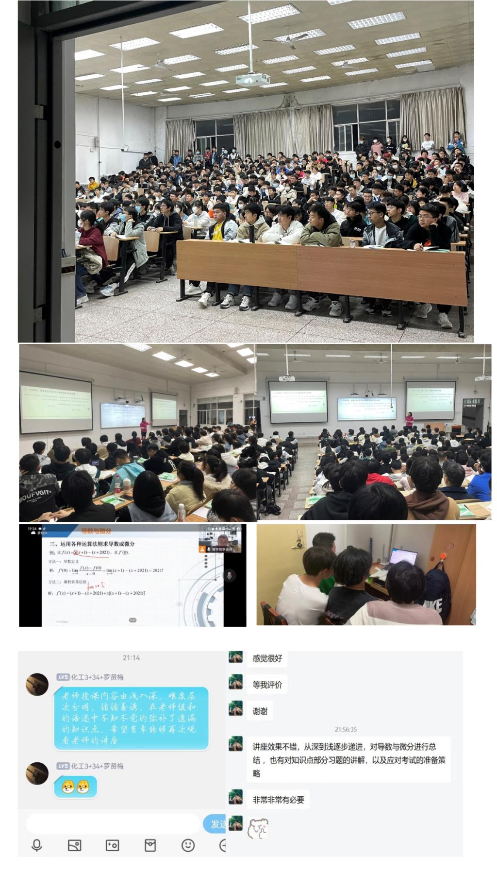 由于新冠疫情的影响,本科教学工作线上、线下持续切换。为了让2022级新生更好的适应大学学习生活,激发新生学习兴趣,帮助新生更好的学习《高等数学》课程,太阳成集团tyc122cc邀请数学系梁少辉、姬战怀、付巧峰、高晓艳、郑颖春、张旭莲和李俊兵等七位教师为同学们开展10场高等数学辅导大讲座。讲座内容涵盖了《高等数学》上册所涉及的极限与连续、导数与微分、微分中值定理及导数应用,不定积分,定积分及定积分的应用,微分方程等重要内容,于2022年11月23日晚开始面向全校理工科员工开展集中辅导,采取线上线下结合的方式,每周进行两次专题讲座。