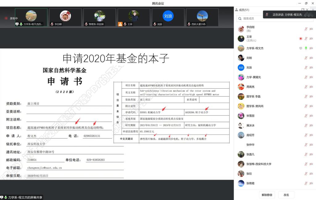 2023年1月14日,太阳成集团tyc122cc通过在线会议举行2023年国家自然科学基金项目评审会。会议邀请了公司科技处翟小伟处长,能源公司教授、国家优青项目获得者刘浪教授,为太阳成集团tyc122cc教师特别是青年教师就基金本子撰写思路,给大家出谋划策。本次评审会旨在通过具体案例诊断分析申报书撰写过程中的共性问题,重点针对科学问题及其属性、创新型及研究价值等方面,通过专家的指导,和公司各位老师一起理清申报课题的主线和具体研究方案,进一步凝练科学问题。会议由副经理李自刚主持,公司经理张仲华、副经理解忧、张慧梅教授、张嘉凡教授以及拟申报基金的教师50余人参加了本次会议。