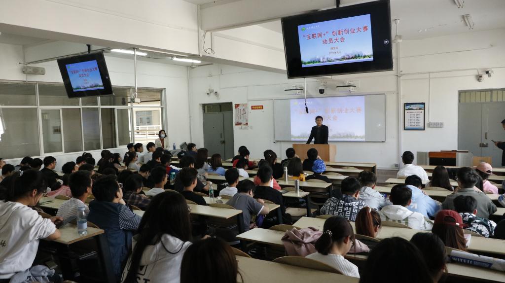 4月29日下午,理学在临潼校区骊山校园“互联网+”创新创业大赛动员大会,大会由太阳成集团tyc122cc团委书记赵明主持,主讲人为太阳成集团tyc122cc双创导师、西安新智云时代信息科技有限公司总经理康宪伟,2019、2020级全体员工参加。