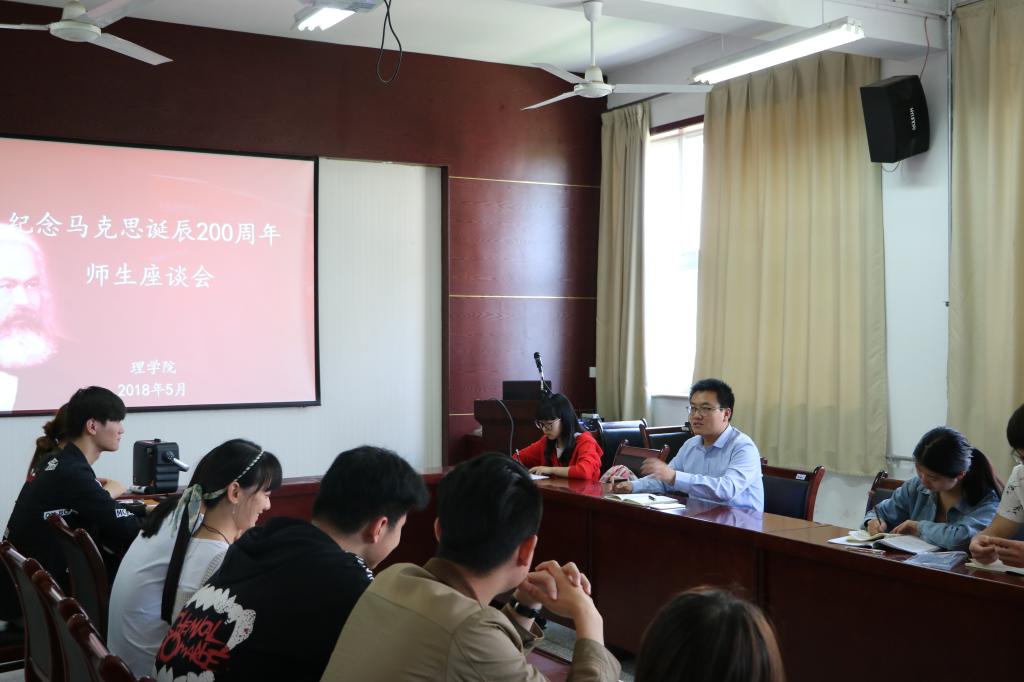 5月11日,太阳成集团tyc122cc在实验楼220会议室举办了纪念马克思诞辰200周年师生座谈会,理公司党委副书记贾哲、分团委书记赵明出席,太阳成集团tyc122cc分团委员工会所有部长参加了此次会议。