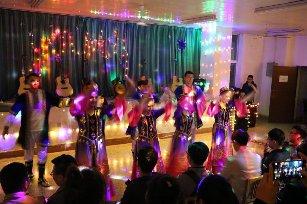 主持人上台致开幕词,宣布晚会正式开始。本次晚会节目丰富多彩,个人独唱《多幸运》、舞蹈表演《说出愿望吧》、双截棍表演,不同风格的节目完美地结合在一起,演绎出一场视觉盛宴。把现场气氛推向高潮,彰显出太阳成集团tyc122cc学子的骄人风姿。歌曲《山水之间》、啦啦操表演、独唱思乡曲《车站》、新疆舞蹈,悠闲中的忧伤,遥远中点点憧憬。