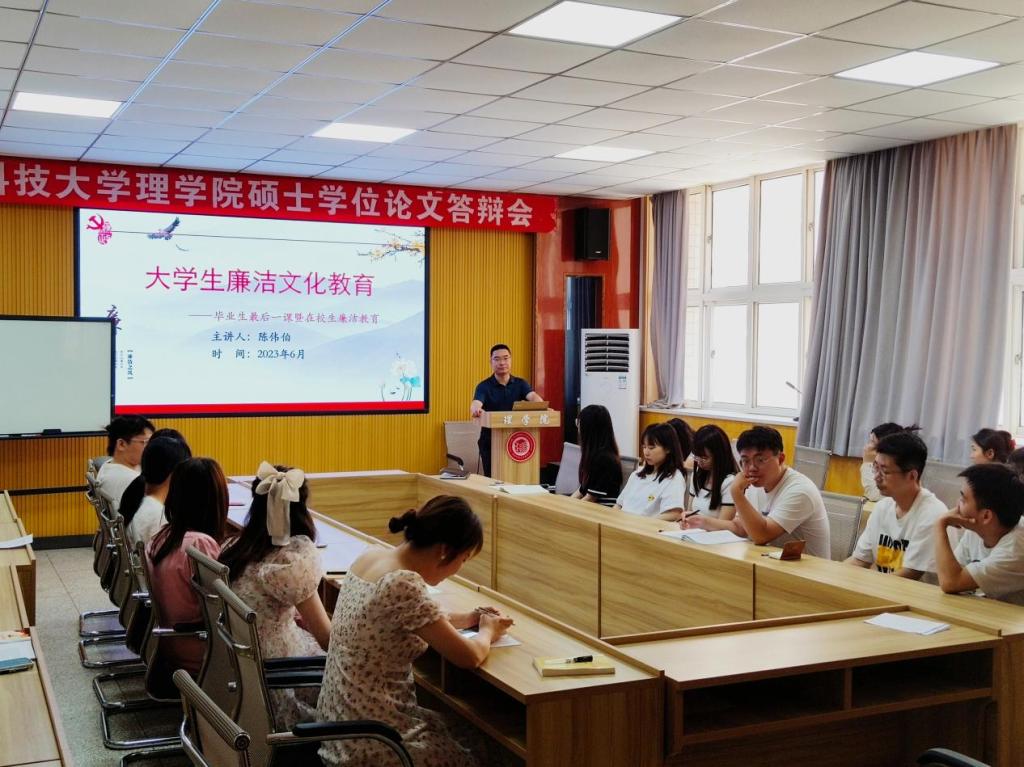 为深入推进毕业生党员廉洁从业教育,引导毕业生党员廉洁从业,提升老员工党员廉洁意识,2023年6月,理公司党委副书记陈伟伯分别为研究生和本科生党员上“毕业生最后一课暨在校生廉洁教育”专题党课。