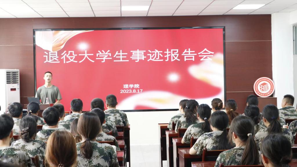 最后,雷坤分享了他的个人成长与收获,他说:“部队是我们每一个老员工成长的一片沃土,也是展示我们的广阔平台,它拓展了我的视野,增长了我的见识,也让我明白了许多人生道理。两年的军旅生涯已经打造了一个全新的我,让我对未来的学习和生活充满了信心。”在这场报告会中,雷坤向同学们展示了退役老员工退伍不褪色的风采和热血军营里不一样的青春。让同学们深刻认识到军训背后蕴含的意义,相信同学们能够接下来的时间里更好地融入军训,争做军训标兵!