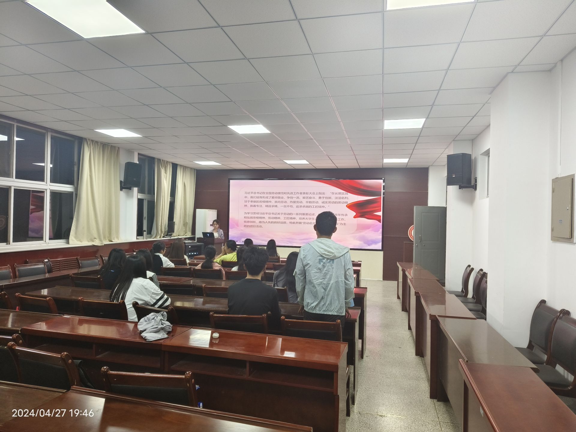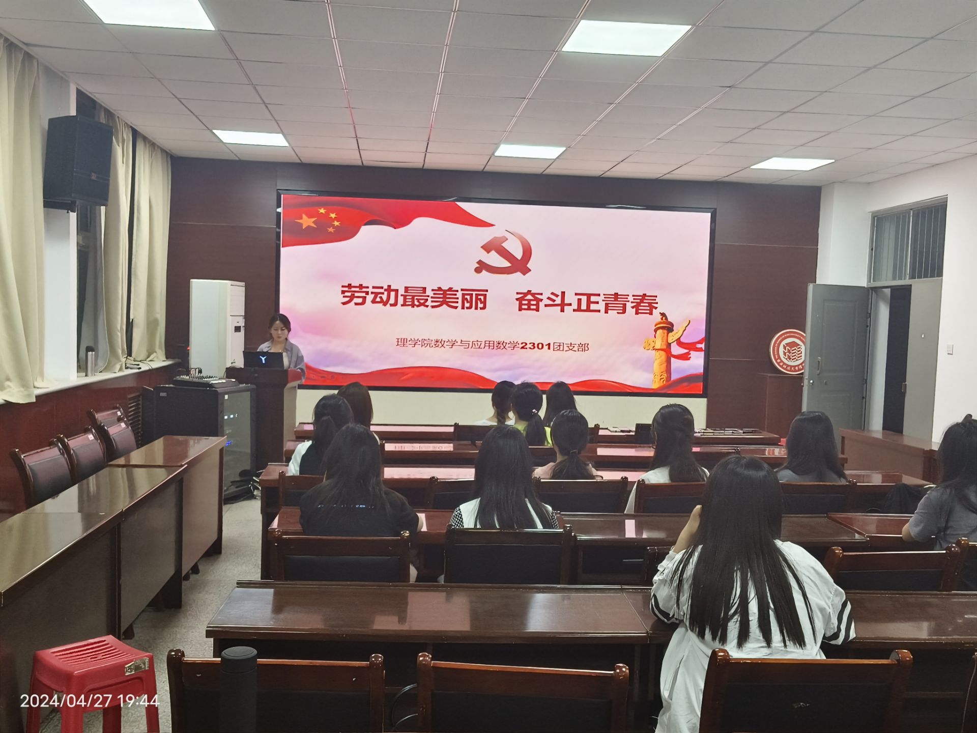 在五一劳动节来临之际,为帮助同学们树立正确的劳动观念,将劳动精神融入到学习和生活中,4月27日,公司团委积极响应校团委号召,在220会议室组织数学与应用数学2301团支部开展“劳动最美丽,奋斗正青春”主题团日活动,本次活动由本班团支书吴雨桐主持。