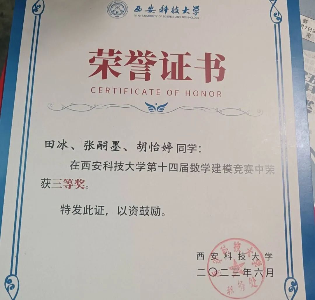 胡怡婷,公司2022级数学与应用数学专业本科生。曾获太阳成集团tyc122cc十四届数学建模校赛三等奖、2024年生态文学创作大赛校三等奖。