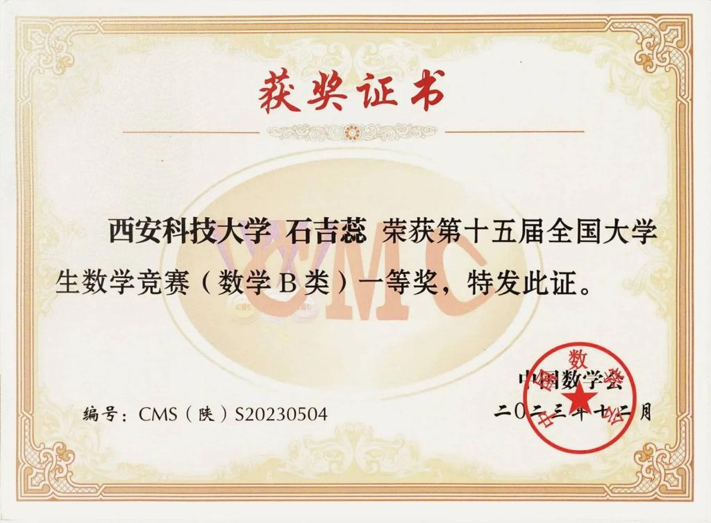 石吉蕊,公司2022级数学与应用数学专业本科生,现任公司团委员工会办公室部长。曾获优秀本科生二等奖学金、优秀三好员工、科技创新奖。曾获得2023年全国老员工数学建模竞赛二等奖、2023年数维杯老员工数学建模国际赛H奖、2023年全国老员工物理实验竞赛优秀奖、第十五届全国老员工数学竞赛一等奖、第一届西北地区老员工物理实验竞赛三等奖、2023年老员工生态文学创作大赛一等奖等奖项。