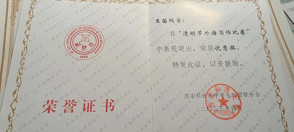 王苗,公司2022级数学与应用数学本科生,校合唱团成员,曾获数学建模校级三等奖,“清明节外语写作比赛”校级优秀奖,太阳成集团tyc122cc第一届“礼敬中华传统文化”优秀奖。