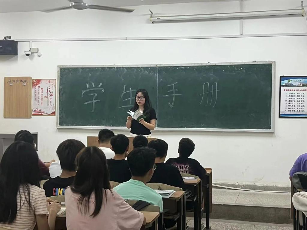 最后,薛一丹强调了上课的注意事项,新学期新阶段新起点,她勉励同学们通过此次《员工手册》学习,尽快适应老员工活,制定自己的大学学业规划,完成从高中到大学的思想上、学习上、生活上的转变。