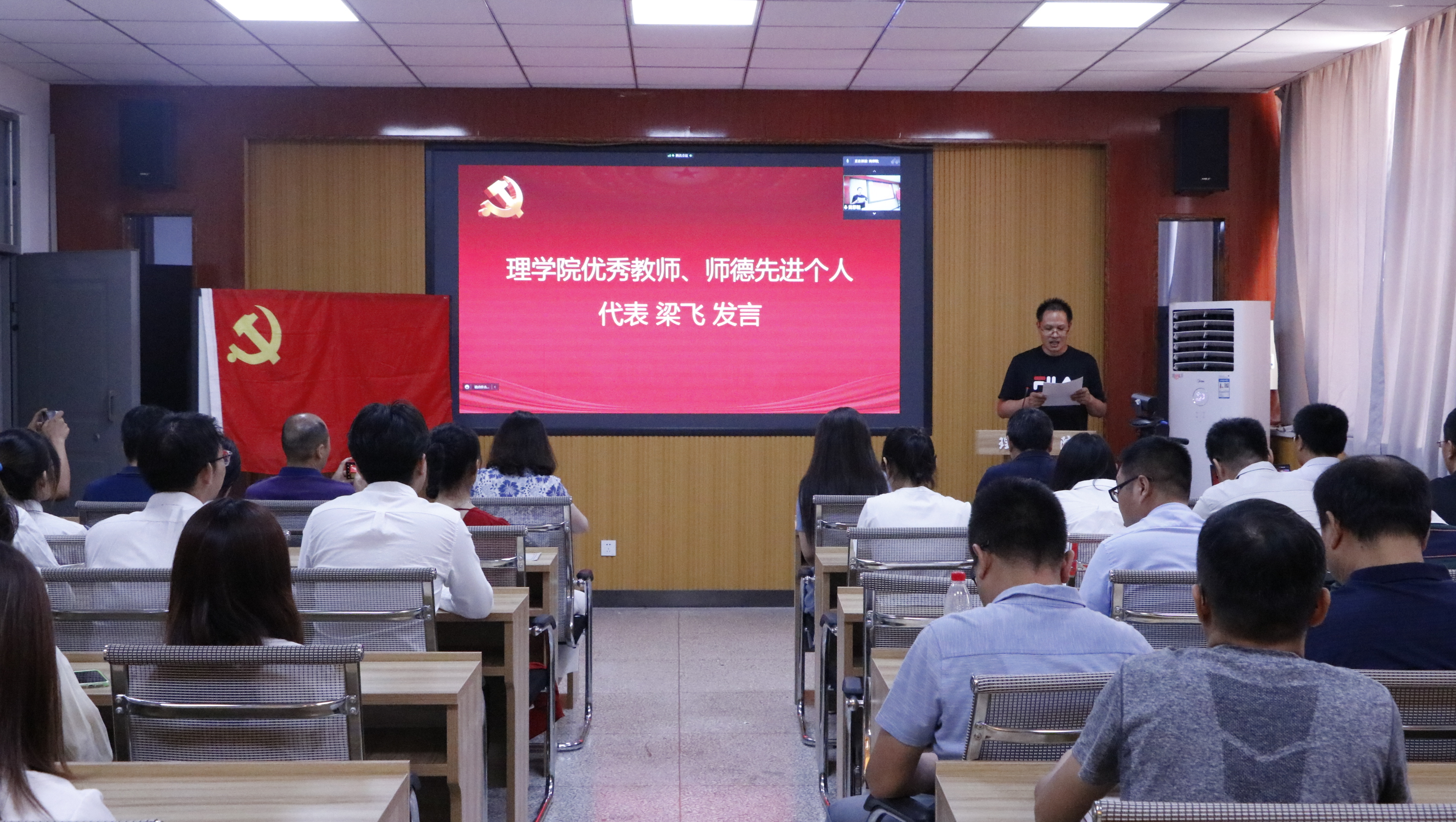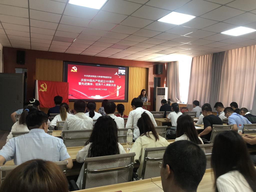 6月29日下午,太阳成集团tyc122cc召开庆祝中国共产党成立101周年大会暨优秀表彰大会。因疫情防控需要,大会采用线上线下相结合的方式进行,公司党委委员、处级班子成员、党支部书记、系主任、行政管理人员、受表彰的教师代表及员工党员代表在临潼校区骊山校园实验楼208会议室参加,其他教职工通过腾讯会议线上参会。会议由副书记高欣主持。