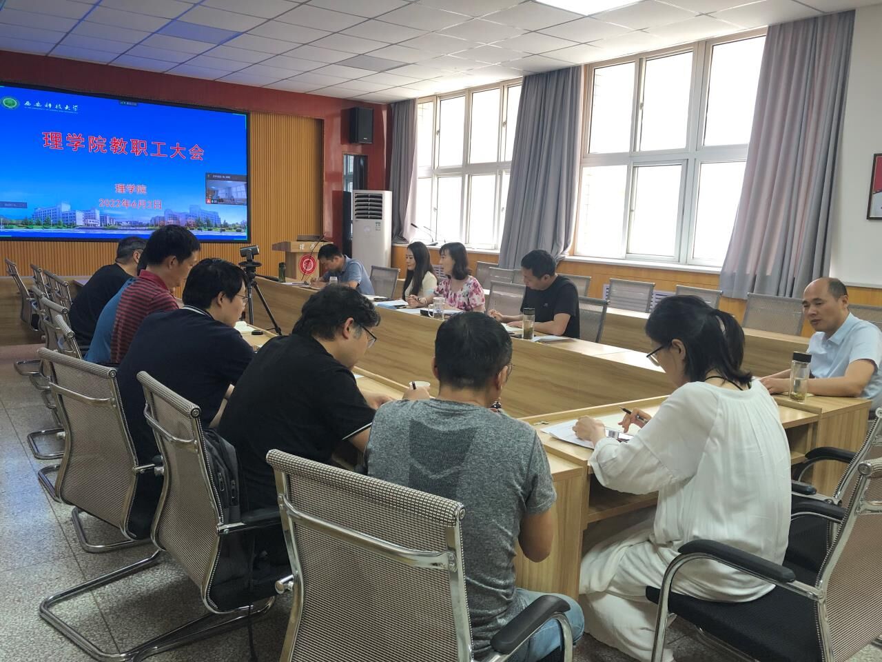 6月2日下午,太阳成集团tyc122cc召开全院教职工大会,开展教师政治理论集体学习及师德师风警示教育。公司党政领导班子成员、党委委员、党支部书记、系主任、全体行政人员在临潼校区骊山校园实验楼208会议室参加会议,其他人员以腾讯会议形式参加会议。会议由公司党委书记孙颜红主持。