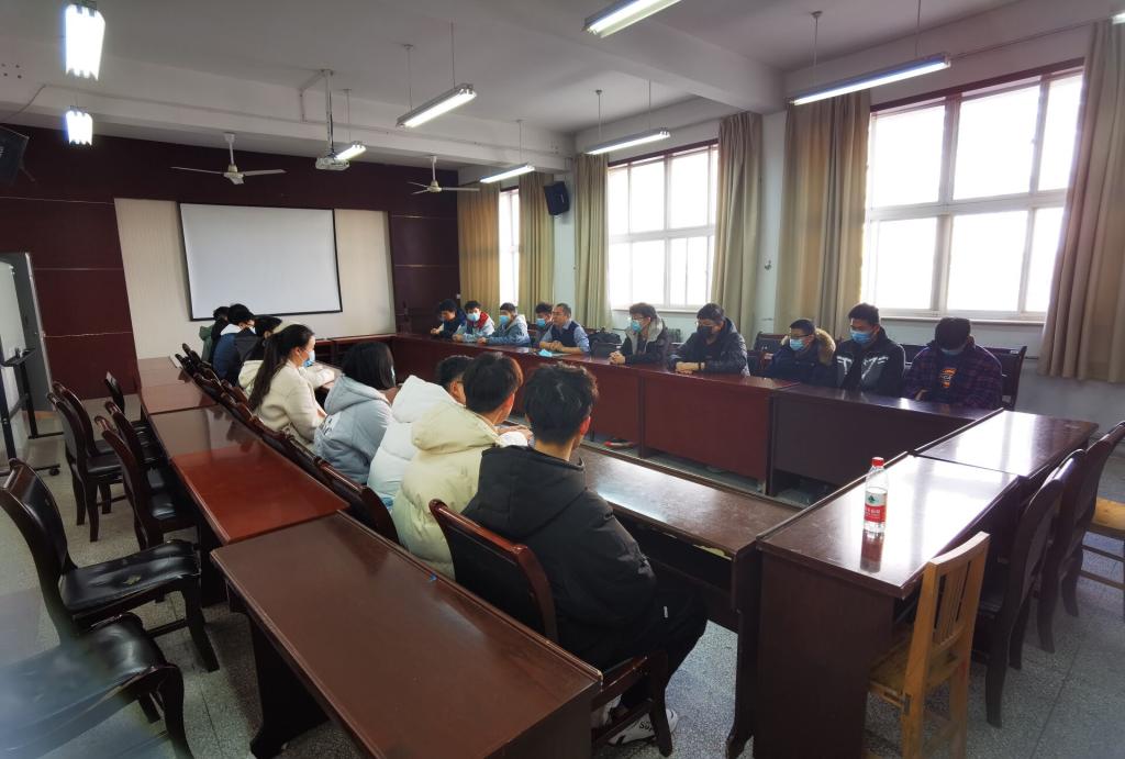 张涛老师为同学们做了期末考试考前动员,以真实案例告诉同学们如何复习提高考试成绩,摆正考试心态,并就老员工活、人际关系等方面给同学们予以指导。会议最后,张涛老师提醒同学们注意关注疫情变化,做好疫情防护,做好自我保护,为国家做贡献。
