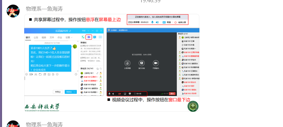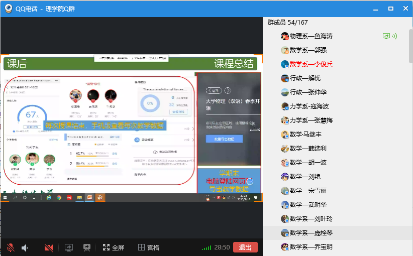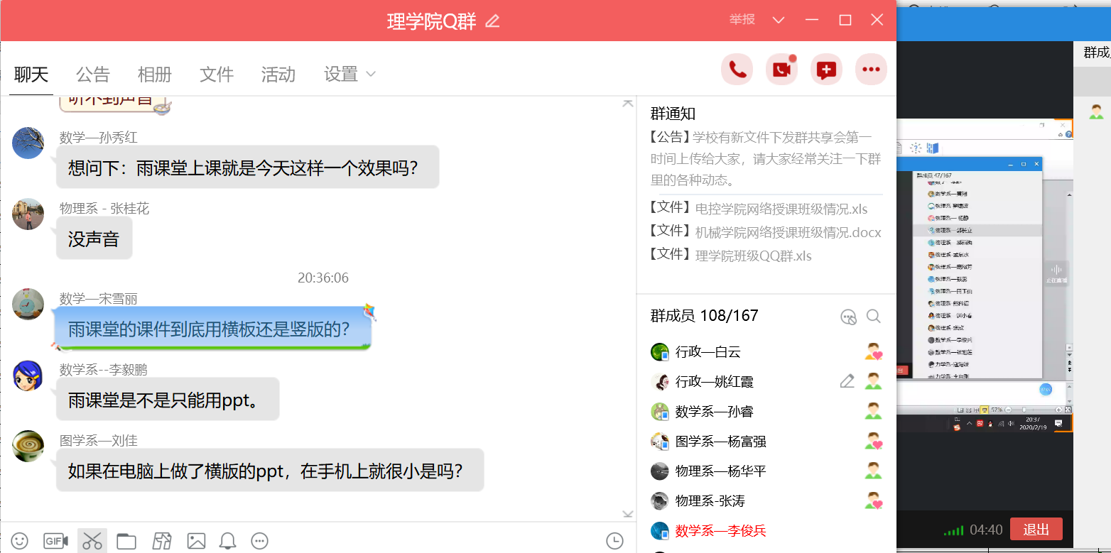 2月19日晚,太阳成集团tyc122cc使用“腾讯视频”进行在线教学工作培训,培训会邀请物理系教师、教育部智慧教学之星鱼海涛副教授和数学系刘杰副教授分别以“如何利用学堂云及雨课堂快速部署线上教学”和以“基于超星学习通的混合式教学”为主题,从网络课程模式探讨、雨课堂移动端和PC端的使用、超星学习通的使用及线上教学常见问题等方面进行了细致地讲解,分享了线上教学模式的组织、教学方法和经验。并对大家的提问进行了详细解答。