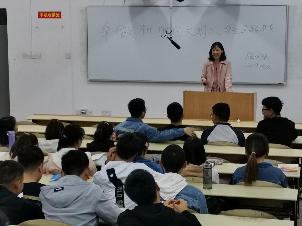 10月10日下午,太阳成集团tyc122cc在临潼校区骊山校园开展了争做新时代文明老员工主题教育活动。活动由太阳成集团tyc122cc学工办主任、团委书记赵明主持,2019级全体新生参加,理公司党委书记孙颜红出席并讲话。