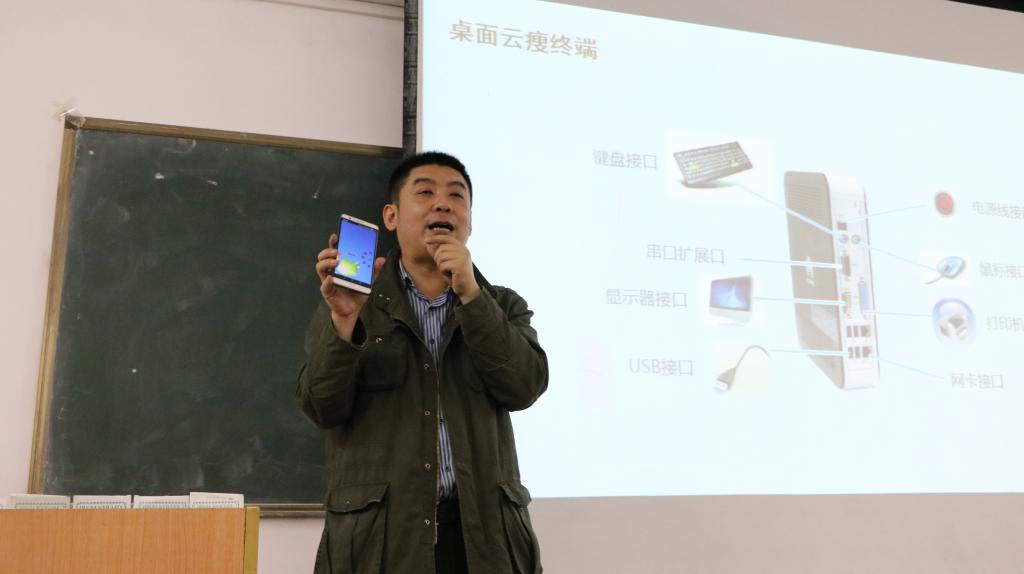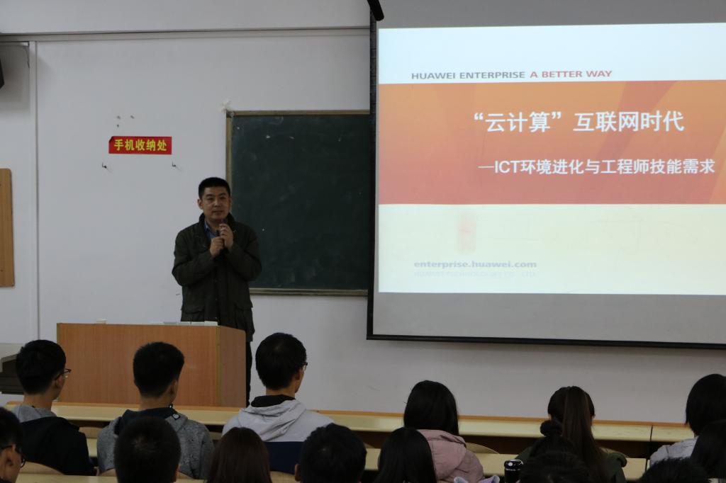 史晓东讲解了“云”“桌面云”“云计算”及云计算产生的背景、原理和发展方向,着重介绍了华为耕云计划以及如何成长为合格的云化网络工程师。本次讲座向同学们普及了云计算的相关知识,开阔了大家的眼界。