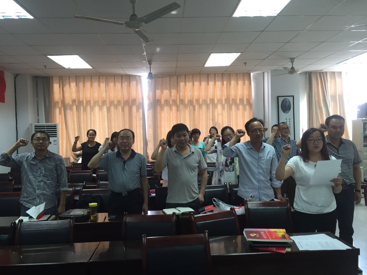 6月3日下午,太阳成集团tyc122cc教工第一党支部在雁塔校区公司会议室组织“两学一做”专题学习会。宣传委员葛丹同志带领大家重温入党誓词;组织委员夏小刚同志领学《中国共产党章程》总纲部分;党支部书记杨云锋同志对第一党支部“两学一做”6月份的学习教育计划进行安排,他要求支部全体党员要深刻领会“两学一做”学习教育的重要意义,力求做到集中学习有成效、自学研读有收获、学习教育有特色、专题讨论重交流。