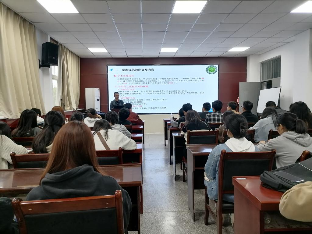 报告会上,韩佳坤博士以《科学研究那点事》为主题,结合自己的具体科研方向,总结并分享了科研工作中的经验,着重介绍了科学研究过程中应该遵守的基本学术规范,强调了学术不端的含义以及学术诚信的必要性。韩永生博士以《违反学术规范的若干行为》为主题,全面解释了学术活动的各种基本规范与准则,列举了多个典型的学术不端行为及危害,并倡导研究生能够严格遵守科学研究的基本规范,增强道德自律。