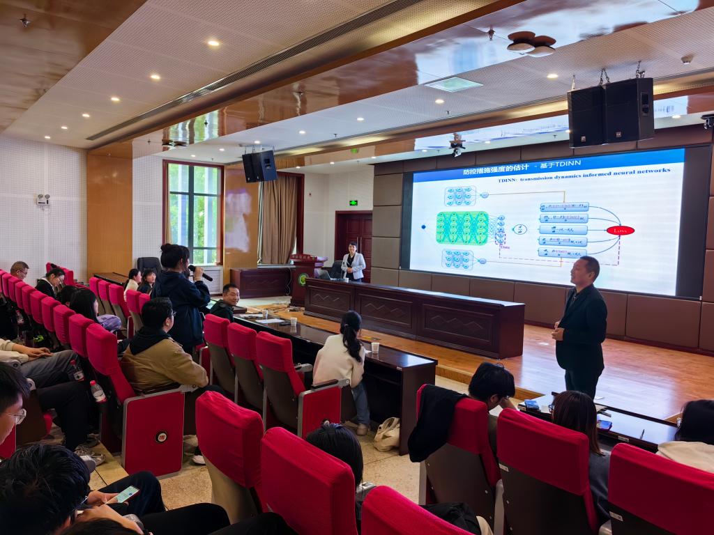 报告会上,肖燕妮教授聚焦新发传染病COVID-19早期预测预警、传播风险估计等关键问题,运用传染病模型、大数据统计分析和人工智能等方法揭示了传染病的传播规律,展现了模型研究在新冠疫情不同时期防控中发挥的重大作用。特别地,介绍了基于“动力学模型+深度学习”方法对模型进行参数估计以及防控措施有效性评估等。最后,肖教授还演示了团队开发的新发重大传染病疫情预测预警系统,可视化疫情发展和防控。