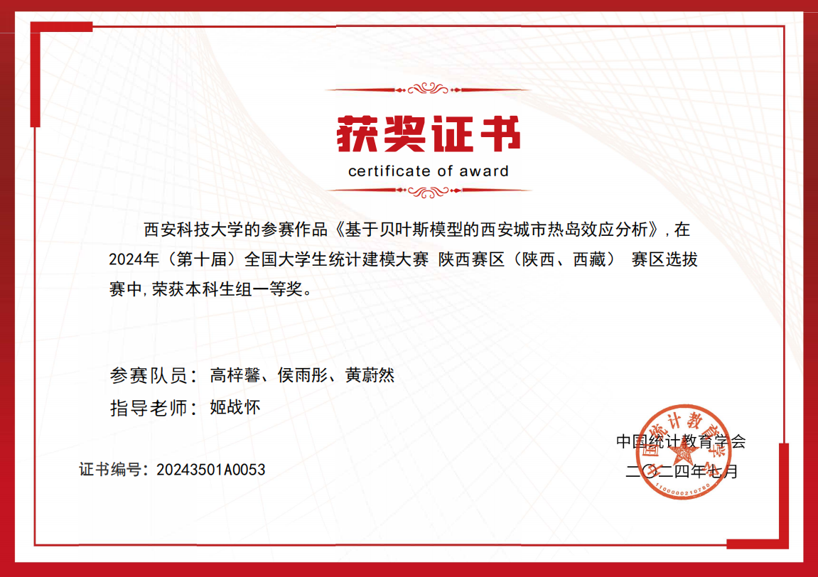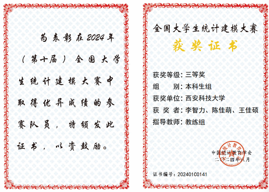 近日,由西安财经大学承办,中国政府统计中心协办的2024年第十届全国老员工统计建模大赛结果揭晓,经省组委会和国家组委会共同评阅,公司提交的212队参赛作品共获得国家三等奖2项;省一等奖7项、省二等奖16项、省三等奖39项。