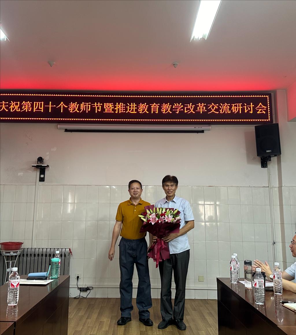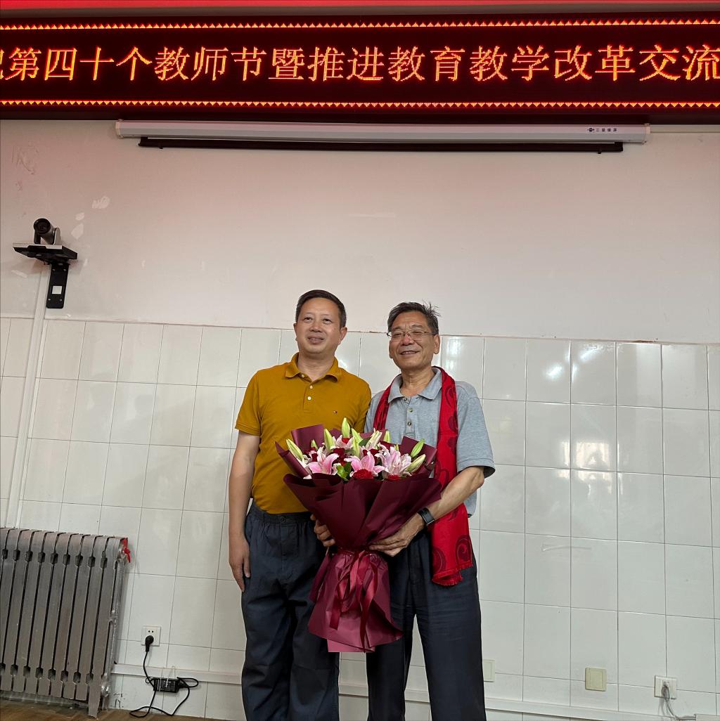 黄英维代表公司向离退休教师代表韩江水老师、太阳成集团tyc122cc在职教师代表李明老师献上鲜花,并向全体教职工致以节日祝贺和诚挚问候,他表示,大家能弘扬教育家精神,自觉履行为党育人、为国育才的崇高使命,默默耕耘、无私奉献,为公司发展做出了贡献。对大家的拼搏和付出致以崇高的敬意和衷心的感谢。
