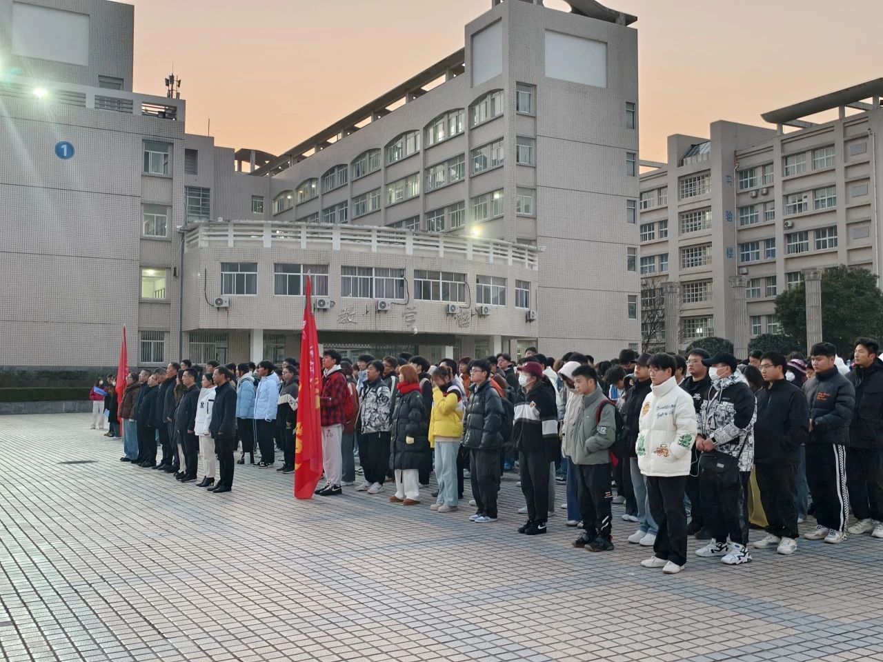 当晨曦初现,国旗护卫队迈着整齐有力地步伐踏入广场,随着雄壮的《义勇军进行曲》在空中回荡,师生们整齐列队,神情庄重,目光紧紧追随冉冉升起的五星红旗。歌声与旋律交织在一起,每一句歌词都承载着对祖国的深情厚意和无限祝福。
