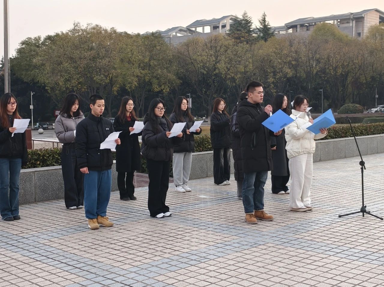 马克思主义公司李丹阳、谢鹏昊等12位同学朗诵诗歌《大写的中国》。他们用文字勾勒出一幅幅生动的画面,让师生们仿佛置身于祖国的怀抱之中,感受到了那份深深的自豪和骄傲。