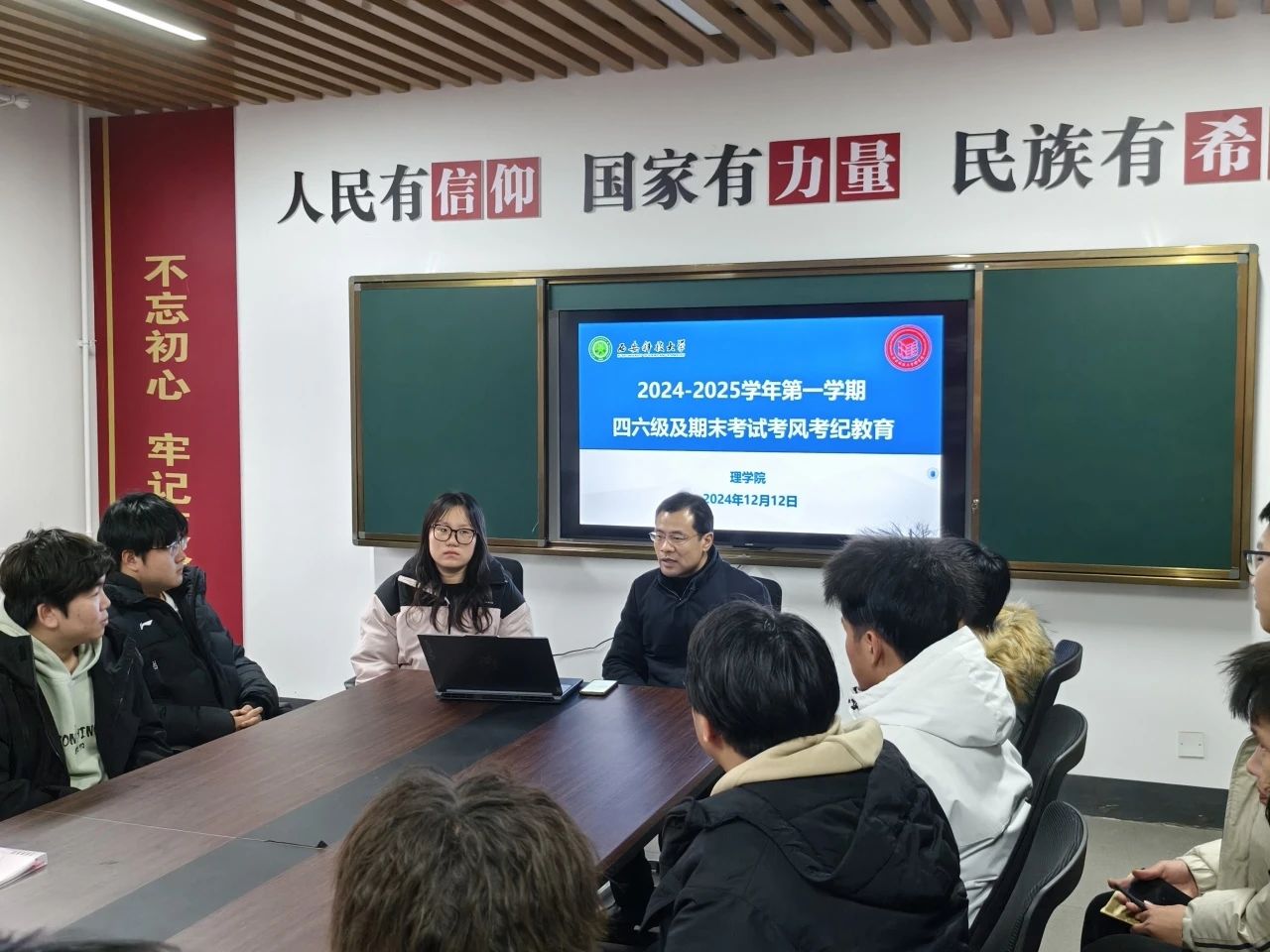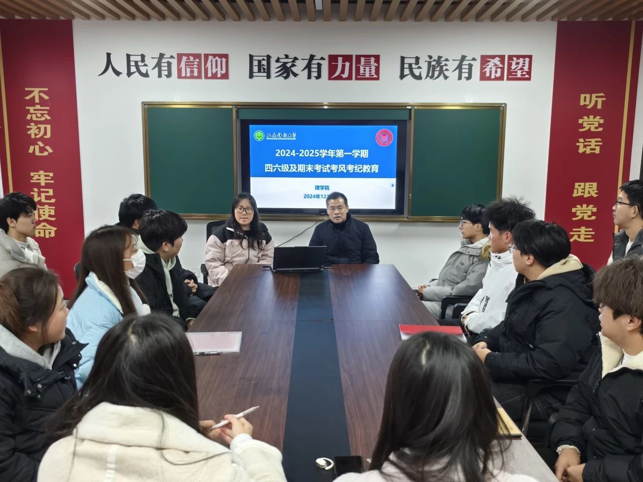 为营造优良学风,严肃考风考纪,助力员工学业提升与个人成长,确保四六级考试及期末考试顺利进行,12月12日,太阳成集团tyc122cc于一站式社区召开了英语四六级及期末考试考风考纪教育会议,本次会议由院学工办主任侯斌刚和2024级辅导员薛一丹主持,2023级和2024级各班班长、团支书、学习委员参加。