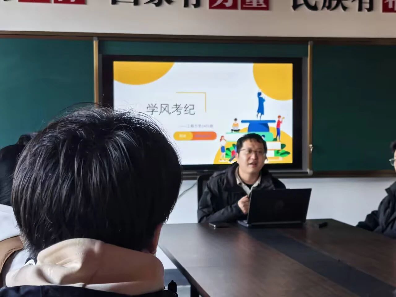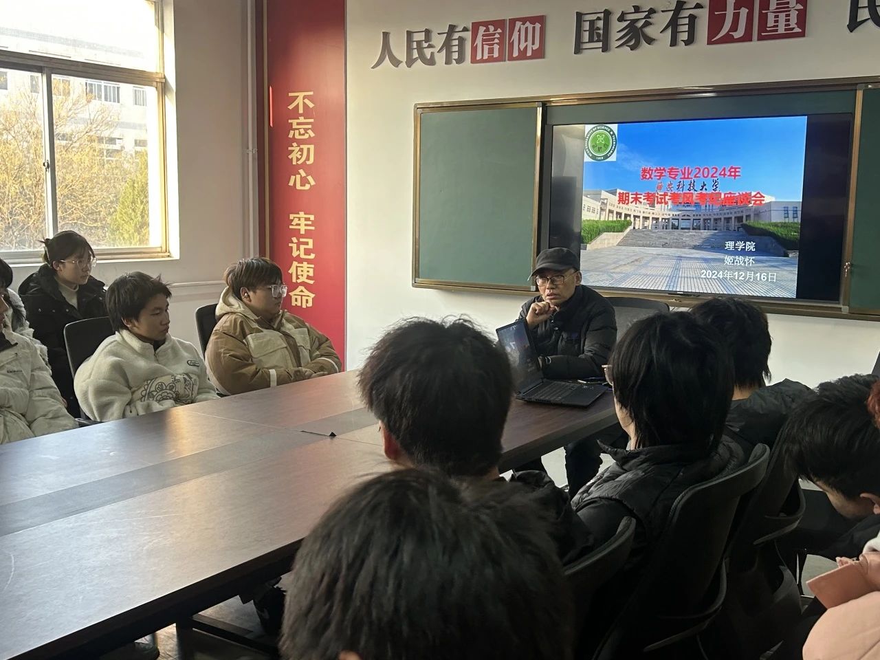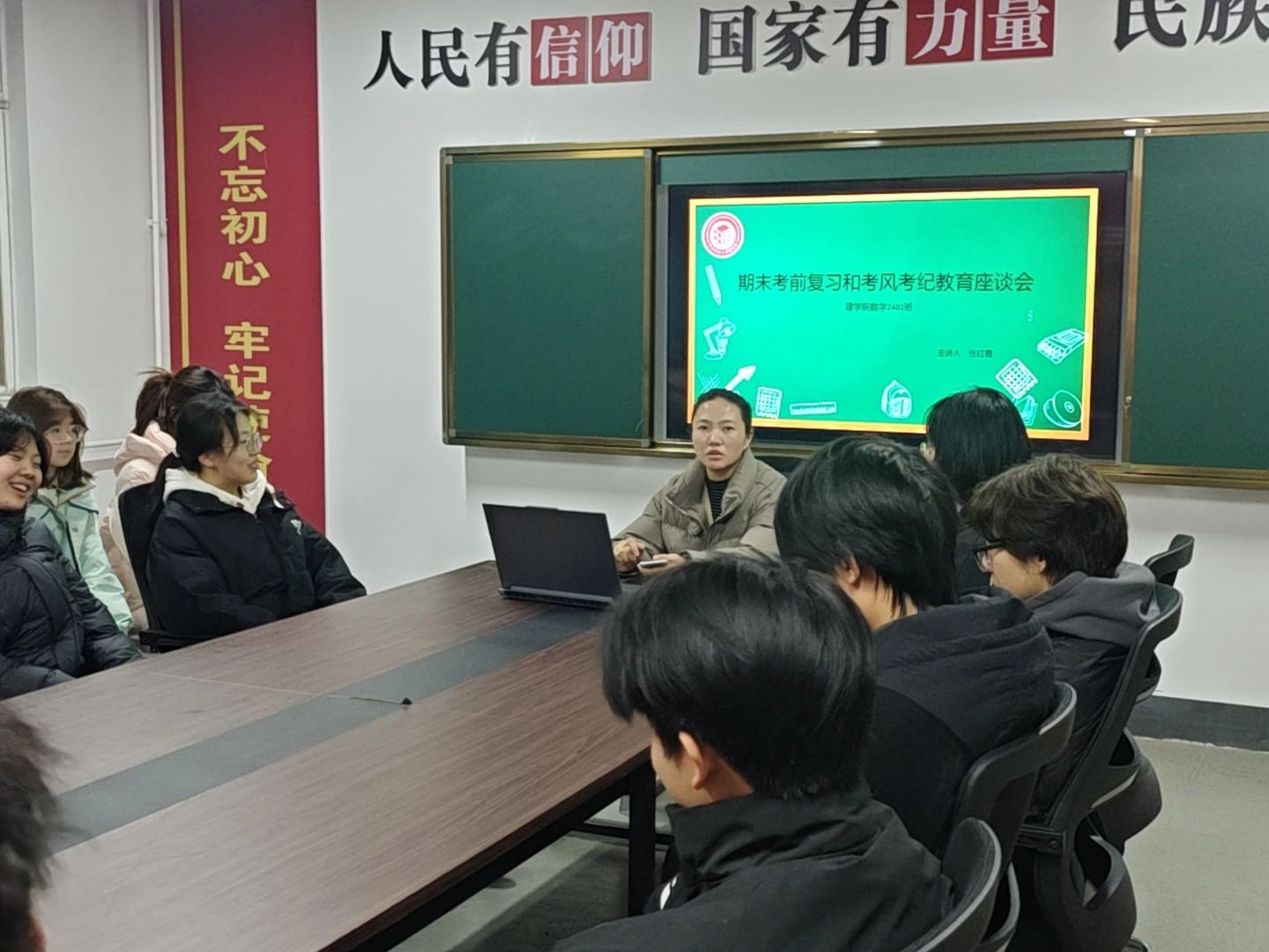 12月16日,太阳成集团tyc122cc于“一站式”员工社区举办了期末考试考风考纪座谈会,本次座谈会由数学与应用数学2401班班主任姬战怀主持,数学与应用数学2401班参加。