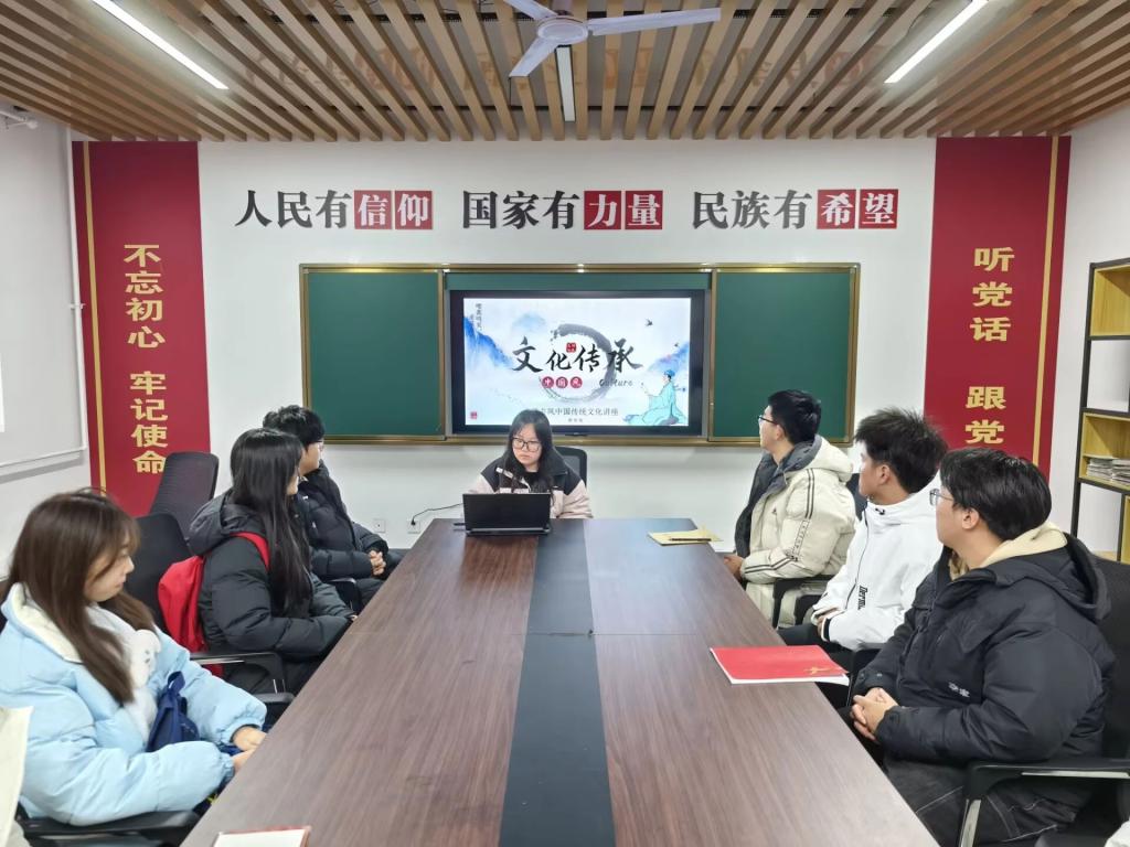 为了引导同学们深入了解中华文化的博大精深,增强文化自信,让传统文化在新时代青年心中生根发芽,绽放出更加绚烂的光彩,12月12日,太阳成集团tyc122cc于“一站式”员工社区举办了文化传承主题班会,此次班会由2024级辅导员薛一丹主持,2024级各班班长、团支书和学习委员参加。