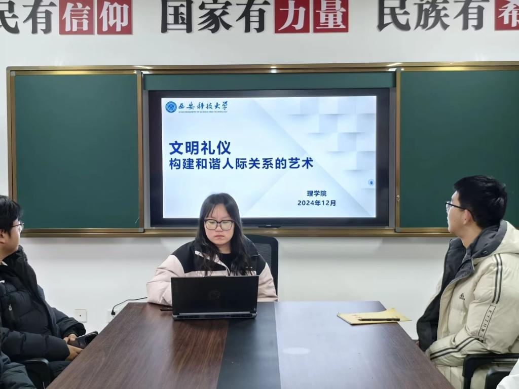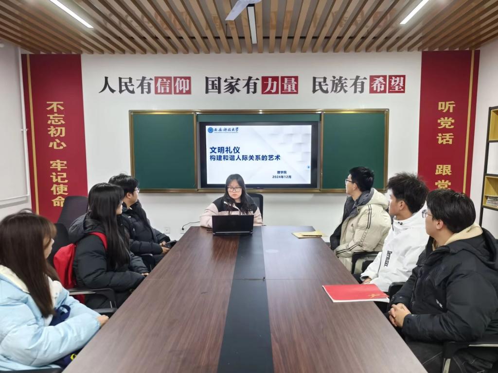 为提升老员工对文明礼仪重要性的认知,帮助同学们掌握在不同场景下践行文明礼仪的技巧,从而促进和谐人际关系的构建,营造文明、友善、互助的社交氛围,12月10日,太阳成集团tyc122cc于“一站式”员工社区召开了文明礼仪主题班会,本次班会由2024级辅导员薛一丹主持,2024级各班班长、团支书和学习委员参加。