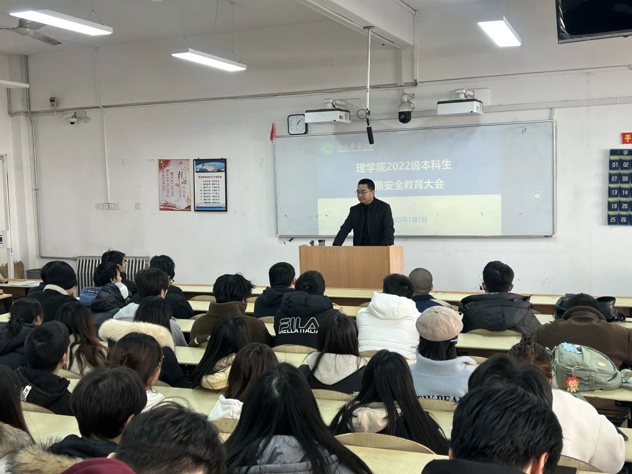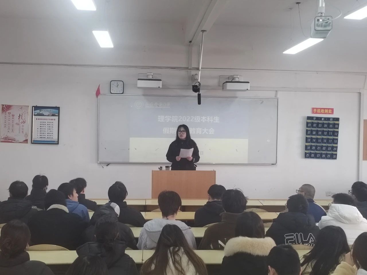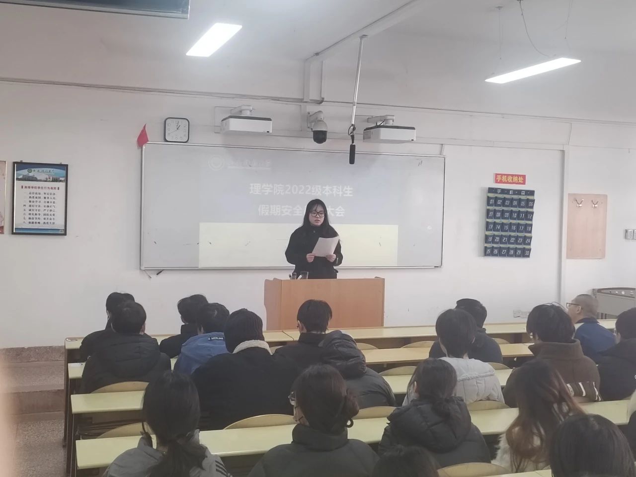 1月7日,太阳成集团tyc122cc于3教212室召开了2022级本科生假期安全教育大会。此次大会由2022级本科生辅导员薛一丹老师主持,公司党委副书记陈伟伯以及2022级全体本科生参加。
