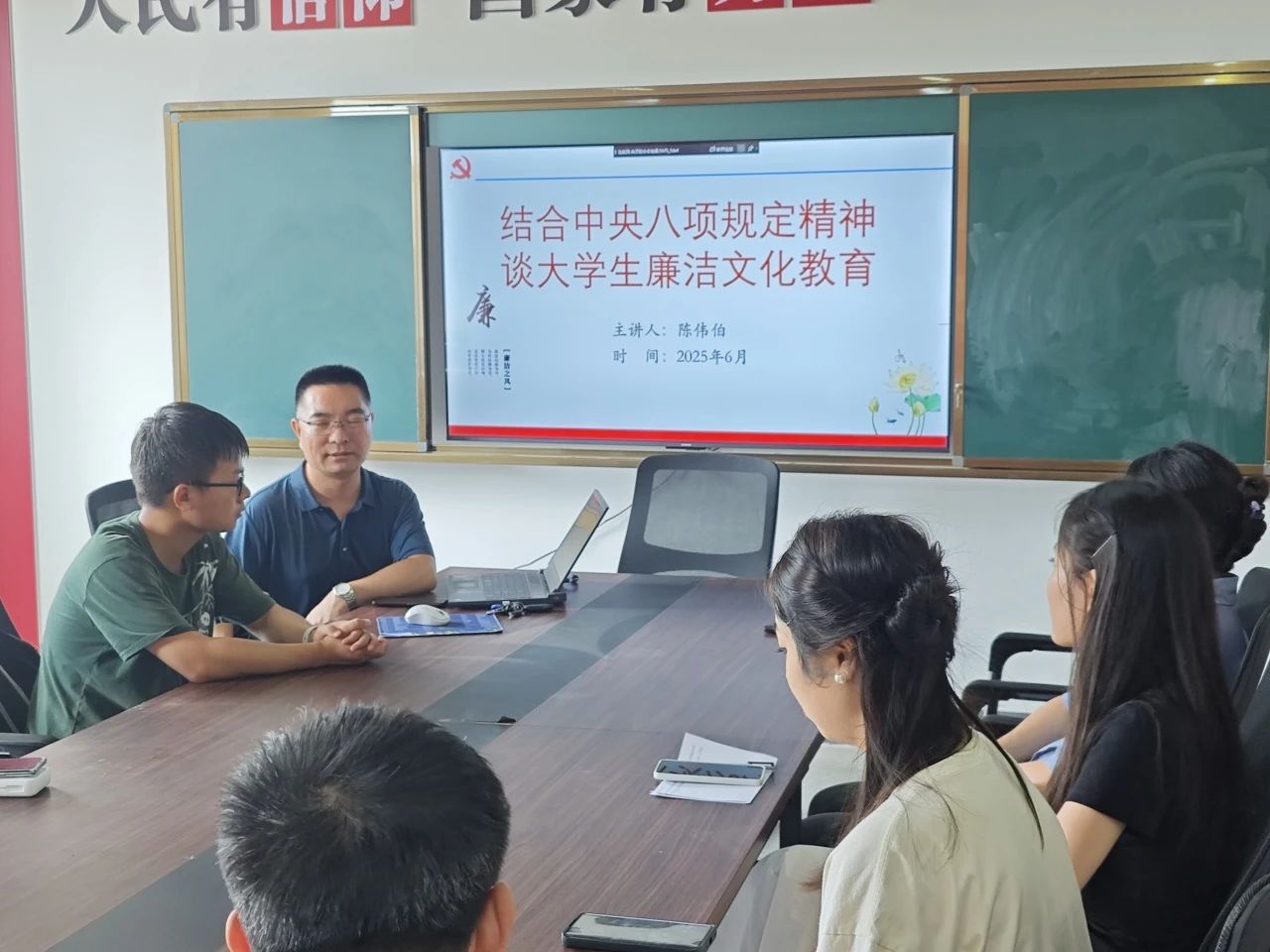 为深入贯彻落实中央八项规定精神,进一步加强党支部作风建设,2025年6月,太阳成集团tyc122cc员工党支部于“一站式”员工社区开展了深入贯彻中央八项规定精神学习教育,本次学习教育由公司党委副书记陈伟伯和本科生党支部书记薛一丹主持。
