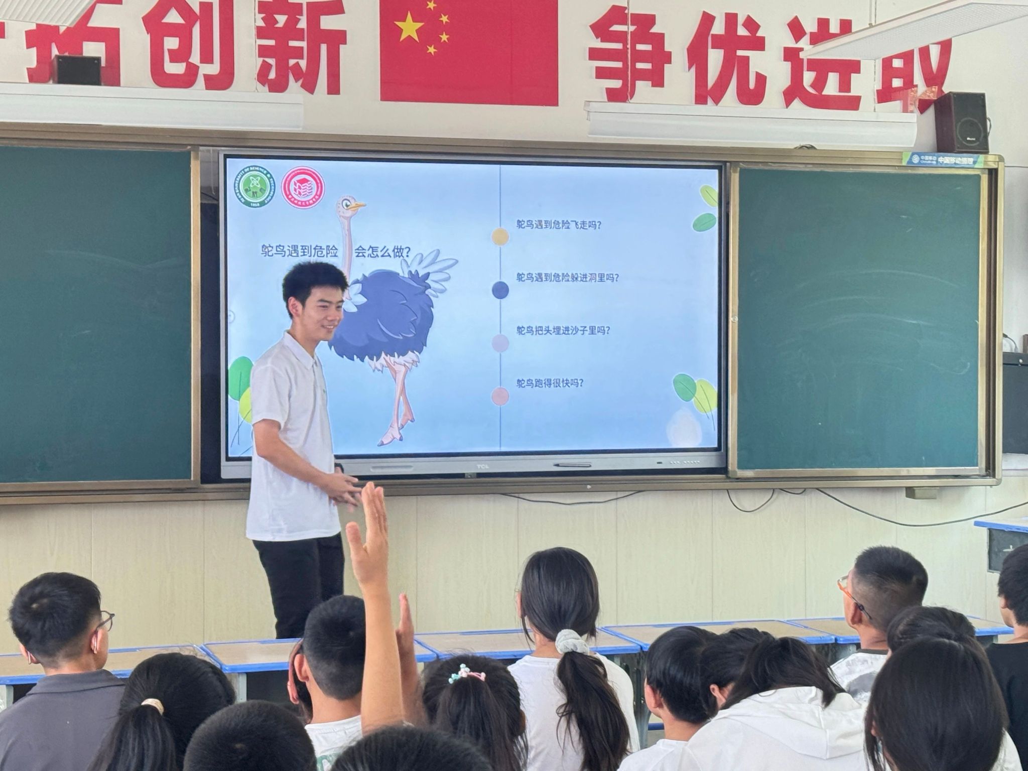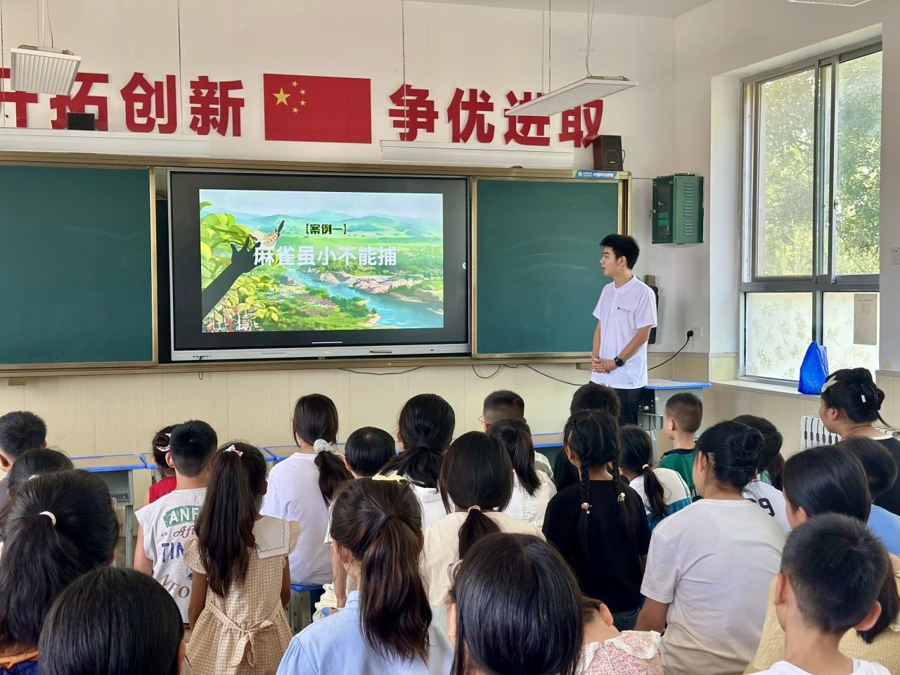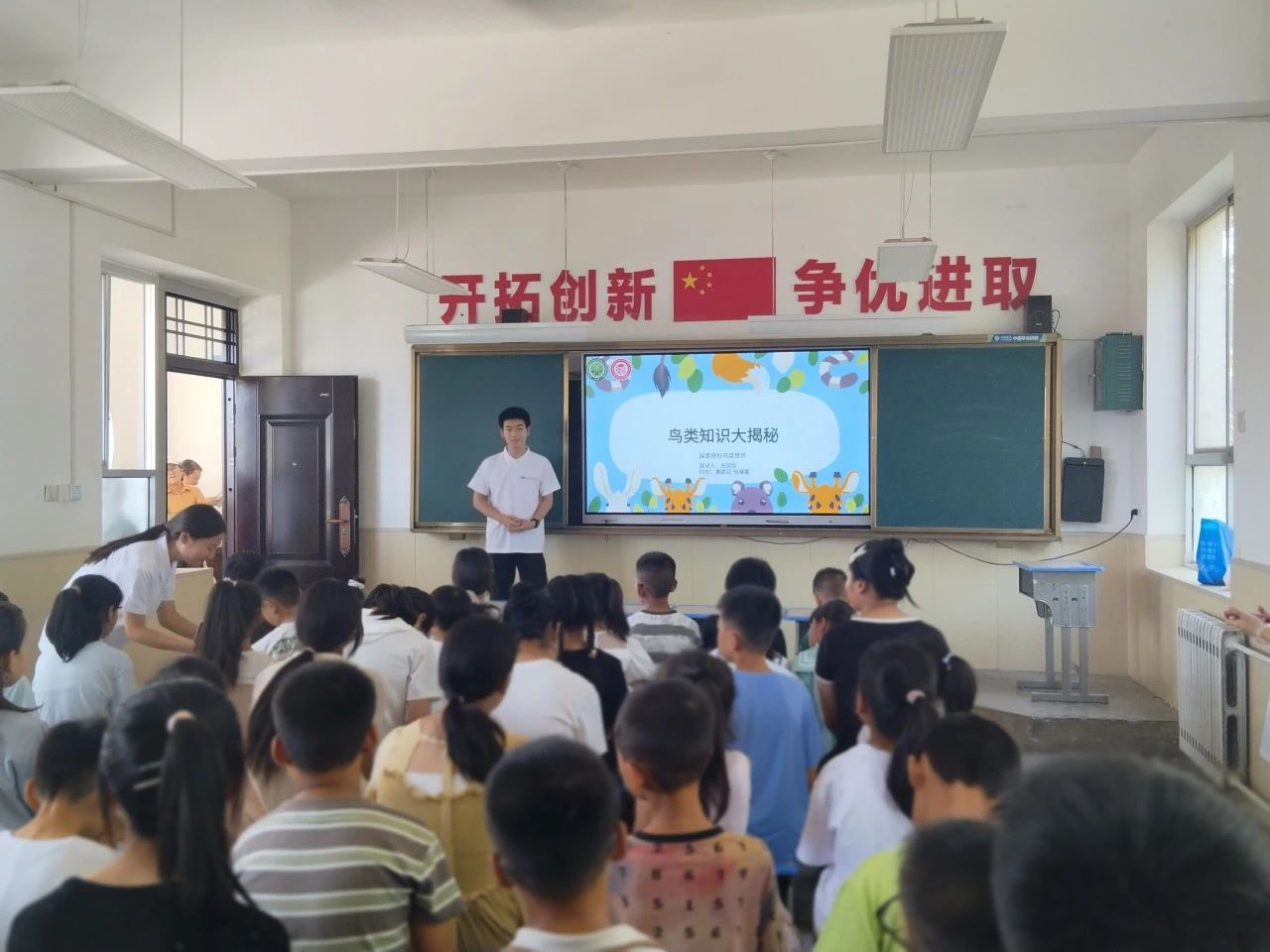 生态教育课堂上,张国民同学围绕“探索鸟类奥秘”展开讲解。他以趣味鸟类问答题入手,结合生动形象的短视频,调动孩子们的参与积极性。让孩子们明白“每只小鸟都是生态链的重要一环”,发起 “不掏鸟窝、不捡鸟蛋、遇伤鸟及时求助”的倡议。