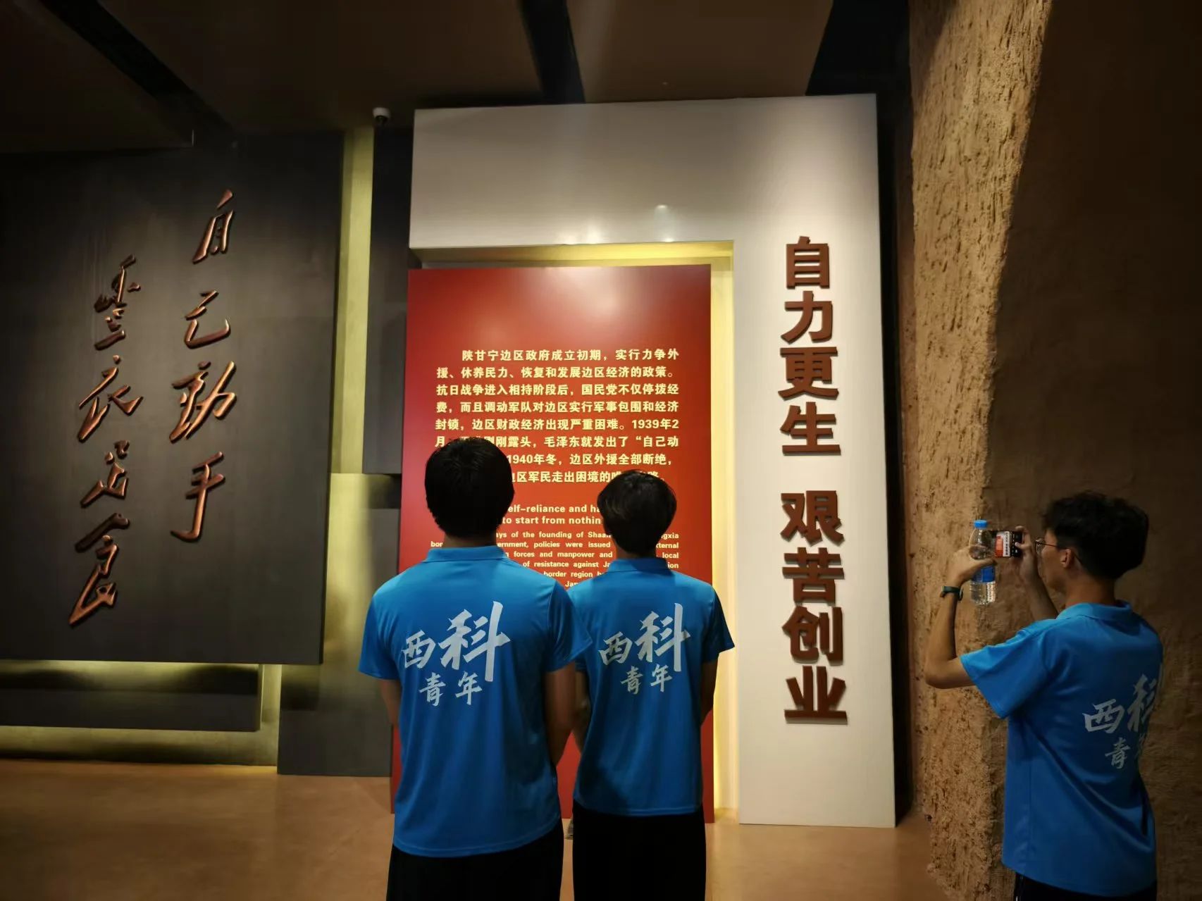 南泥湾大生产运动纪念馆内陈列的一件件锈迹斑斑的农具、一张张黑白的历史照片、一段段详实的文字记载,都在无声地诉说着当年八路军战士们开荒种地、纺线织布的艰辛岁月。同学们驻足凝视,认真聆听讲解员的介绍,当听到战士们在零下几十度的严寒中仍坚持劳作,用双手开垦出万亩良田时,不少同学眼眶湿润。“以前在课本上读到南泥湾大生产运动,总觉得离自己很遥远,今天站在这里,才真正体会到‘自力更生、艰苦奋斗’这八个字的千钧重量,先辈们用血汗铸就的精神丰碑,值得我们用一生去守护和传承。” 同学们感慨道。