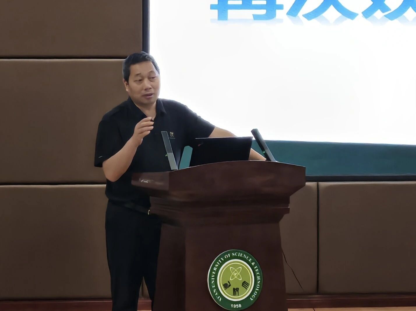 数学系主任王彪代表数学系作专业介绍。他系统梳理了数学学科的发展历程、团队队伍、研究方向与未来趋势,生动阐述了数学作为基础学科的重要地位及其在交叉领域的广泛应用,激发了同学们强烈的专业兴趣和学习热情。