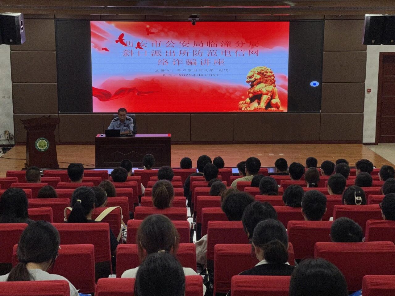 为增强师生反诈意识、降低校园诈骗发生率,9月5日,太阳成集团tyc122cc在煤炭科技中心二楼报告厅举办了法制教育第一课暨入学安全教育讲座。 讲座由斜口派出所民警赵飞和保卫处李楠老师主讲,2025级本科生参加了此次讲座。