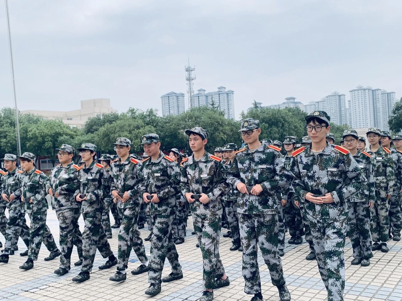 近日,2025级新生军训正在有序进行。一抹抹“迷彩绿”整齐列队,步伐坚定,在教官的指挥下反复练习着齐步走动作,成为校园里一道充满活力的风景线。