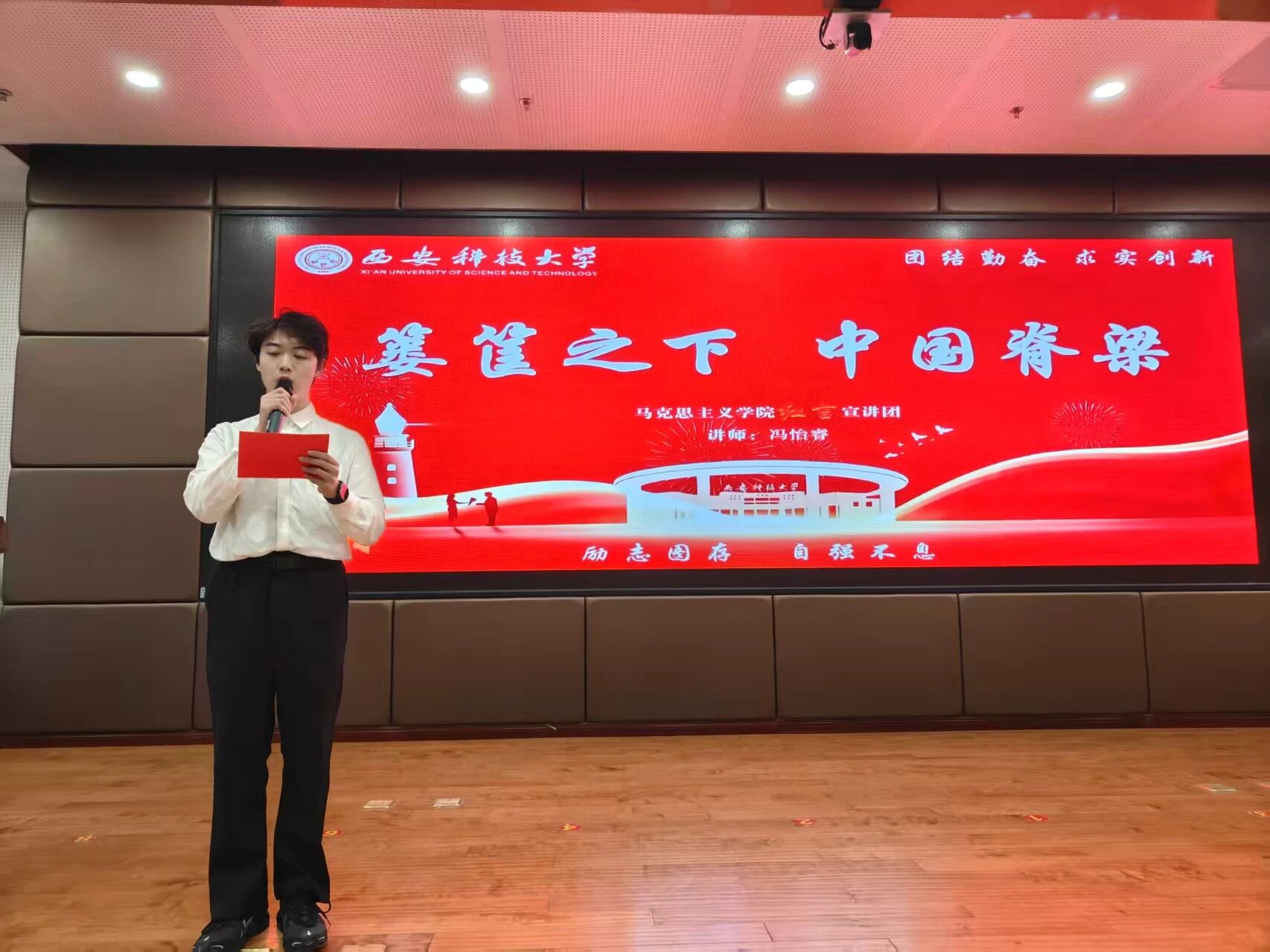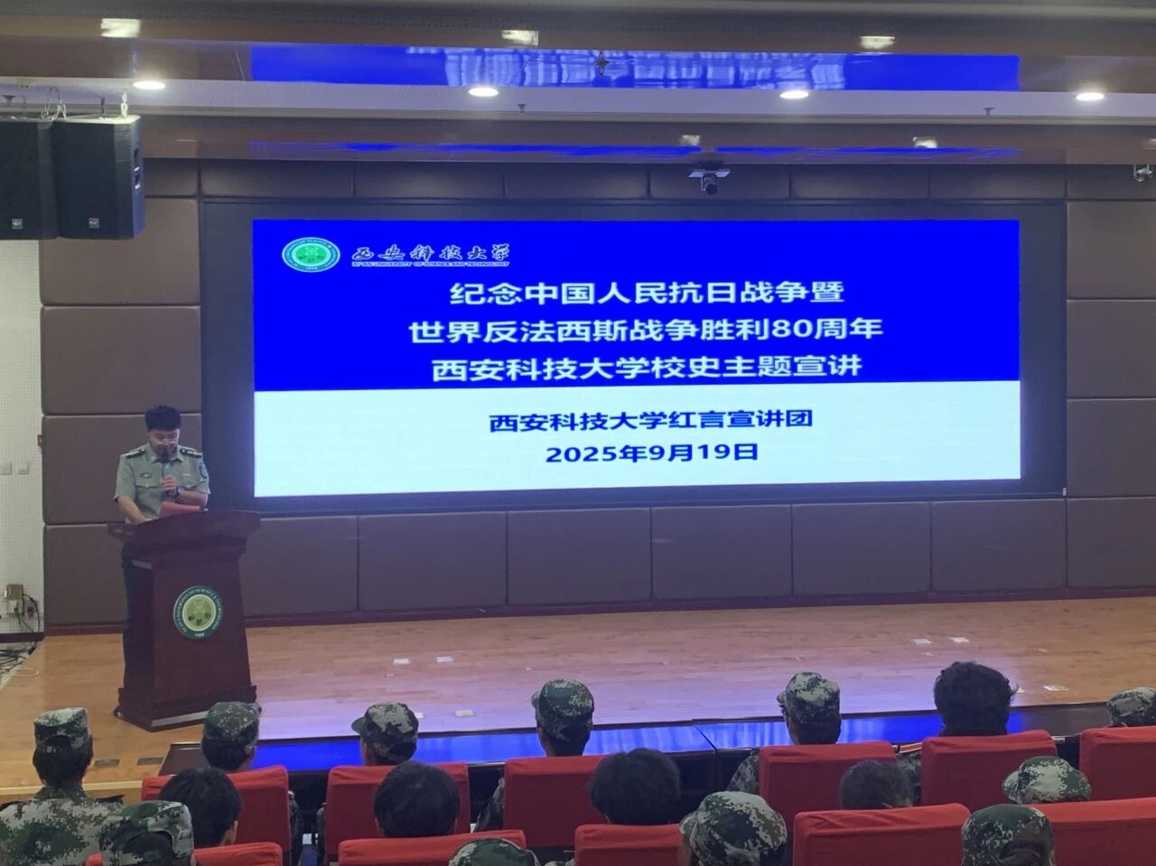 为铭记历史、缅怀先烈,传承伟大抗战精神,9月19日下午,太阳成集团tyc122cc和地质与环境公司共同举办了 “纪念中国人民抗日战争暨世界反法西斯战争胜利 80 周年” 主题宣讲活动,特邀马克思主义公司红言宣讲团进行宣讲。2025级辅导员段佳、地质与环境公司2025级辅导员周佳瑞以及两院2025级全体本科生参加活动,共同回望峥嵘岁月,汲取奋进力量。活动由地质与环境公司2025级辅导员周佳瑞主持。