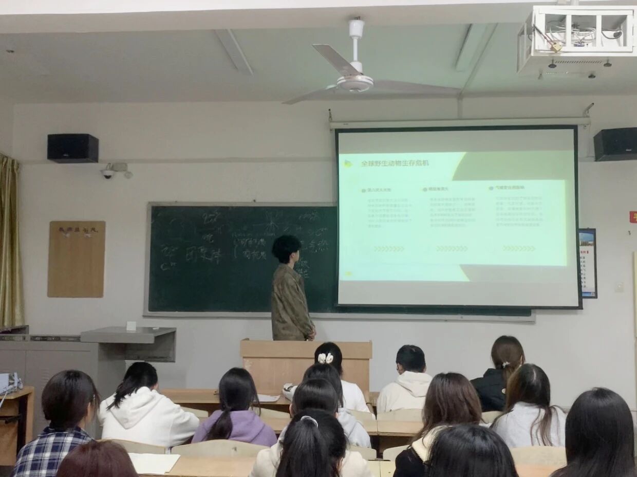 最后,蒋承晔向同学们发出了实际行动的倡议。他鼓励大家从身边小事做起,如拒绝购买野生动物制品、积极参与保护宣传、减少对自然环境的干扰等,用实际行动为野生动物撑起一片安全的生存空间。
