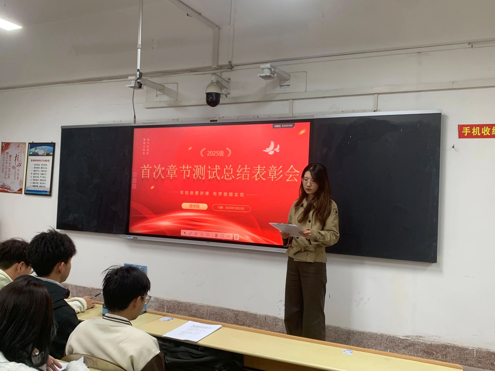 为对开学以来的学习情况进行阶段性总结,激励全体同学共同进步,10月23日,太阳成集团tyc122cc于3-207教室举办了2025级首次章节测试总结表彰会。会议由2025级辅导员段佳主持,公司党委副书记陈伟伯和2025级全体本科生参加活动。