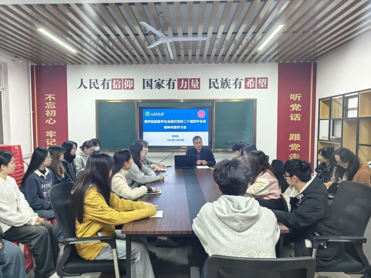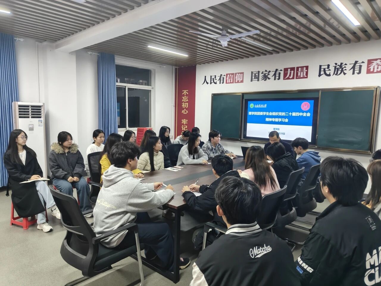 为深入学习领会党的二十届四中全会精神,引导团学骨干统一思想、凝聚共识,10月28日,太阳成集团tyc122cc团委员工会于“一站式”员工社区组织党的二十届四中全会精神专题学习会。会议由院团委书记侯斌刚主持,团委员工会各部门部长、副部长参加。