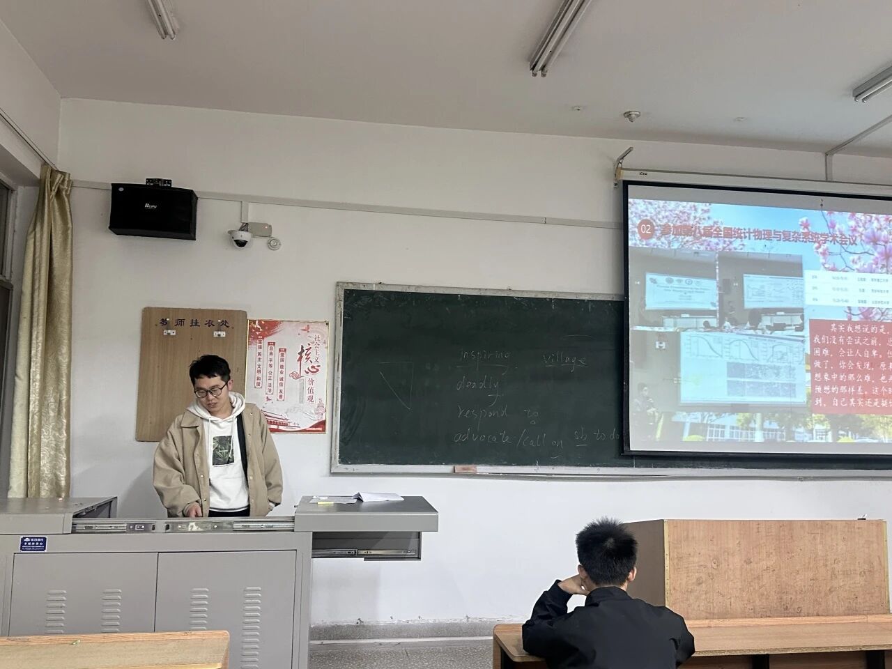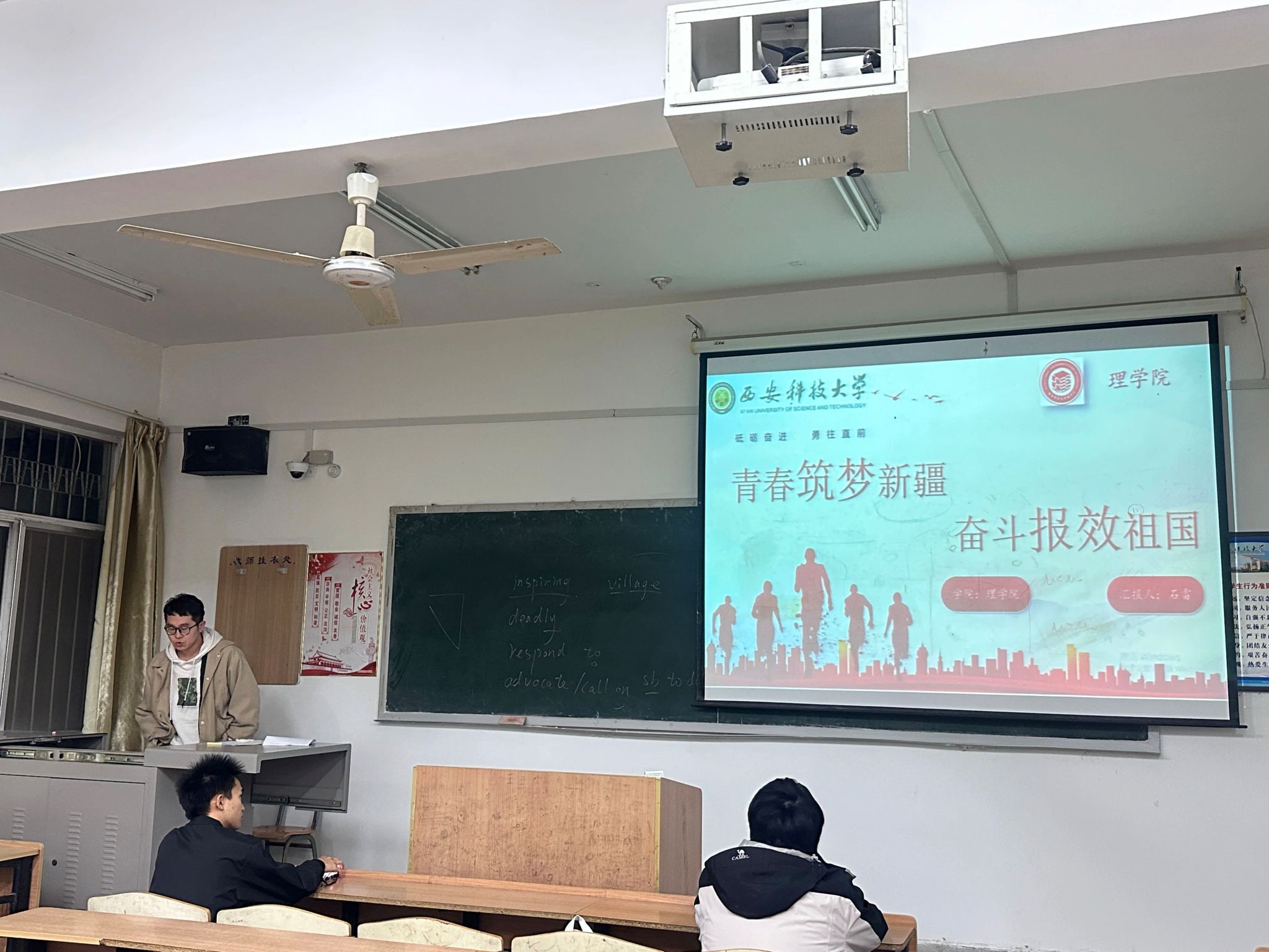 为引导青年学子将个人理想融入国家发展大局,激发同学们赴疆建设、报效祖国的青春热情,11月10日,太阳成集团tyc122cc于1-102教室开展榴苑追梦之“青春筑梦新疆 奋斗报效祖国”报告会。本次活动由研究生石雷主讲,2025级全体本科生参加。
