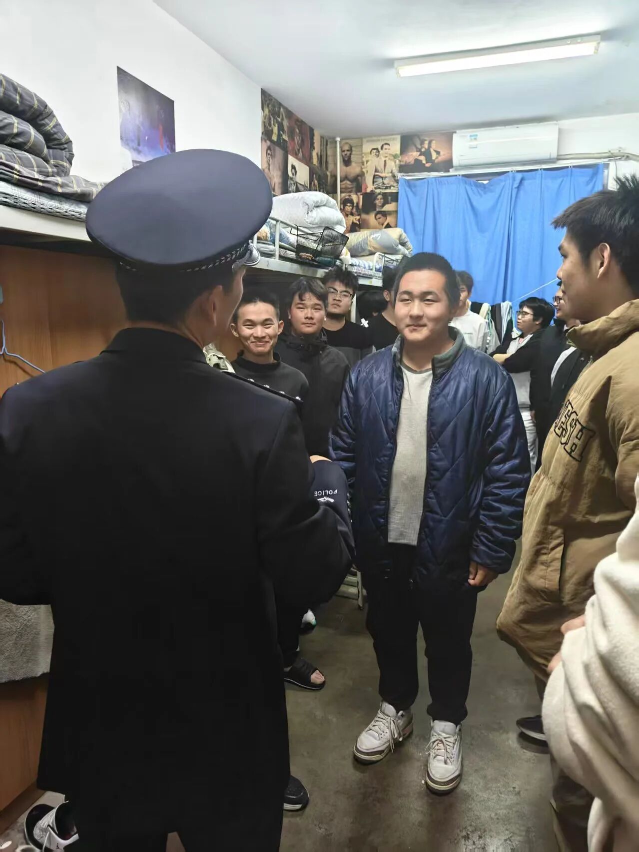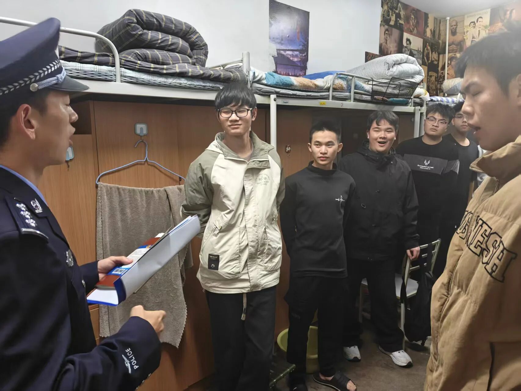 民警和陈伟伯一起走进员工宿舍,开展近距离反诈宣传,与同学们面对面交流,询问日常网购、社交软件使用等情况,针对性提醒同学们警惕陌生链接、虚假兼职信息,同时指导同学们下载注册“国家反诈中心APP”,讲解APP的预警拦截、举报诈骗等功能。