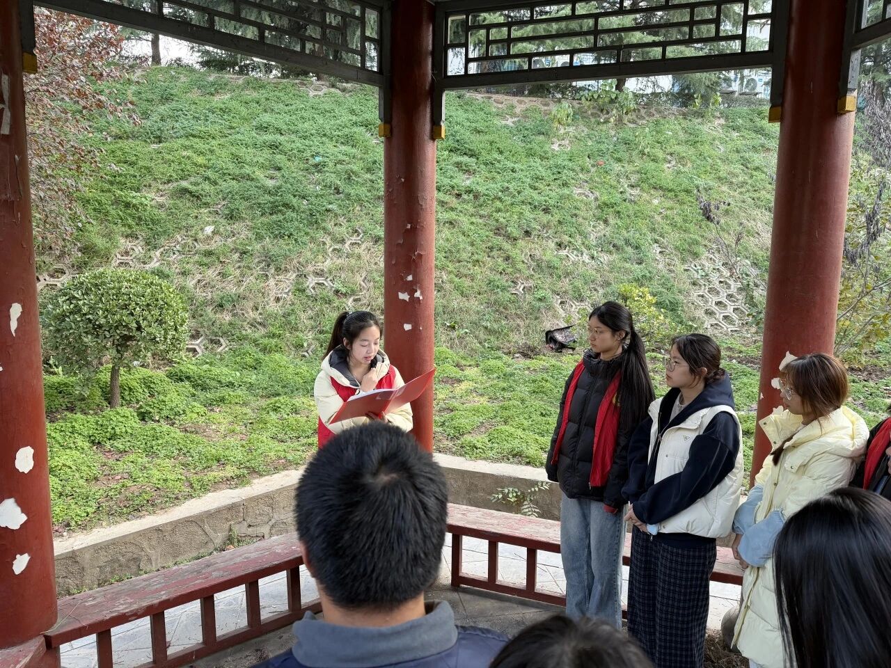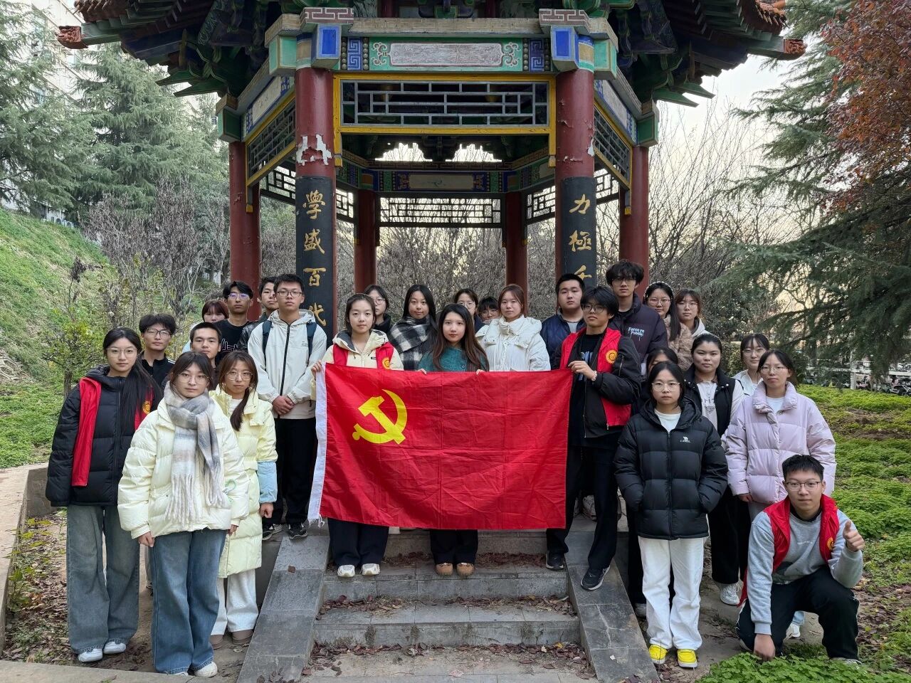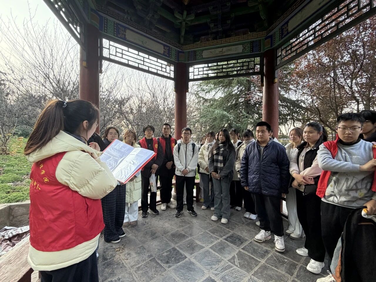 为增强同学们的爱校荣校意识,提升劳动观念与奉献精神,11月23日,太阳成集团tyc122cc于博知亭组织开展了“传承员工精神 践行绿色使命”特色主题党日活动。2024级、2025级辅导员段佳及2025级入党积极分子参加了此次活动。