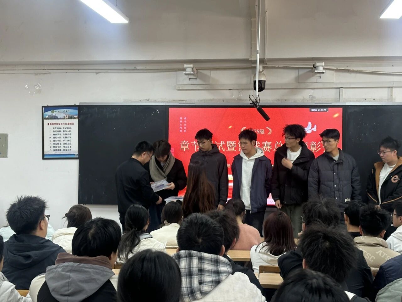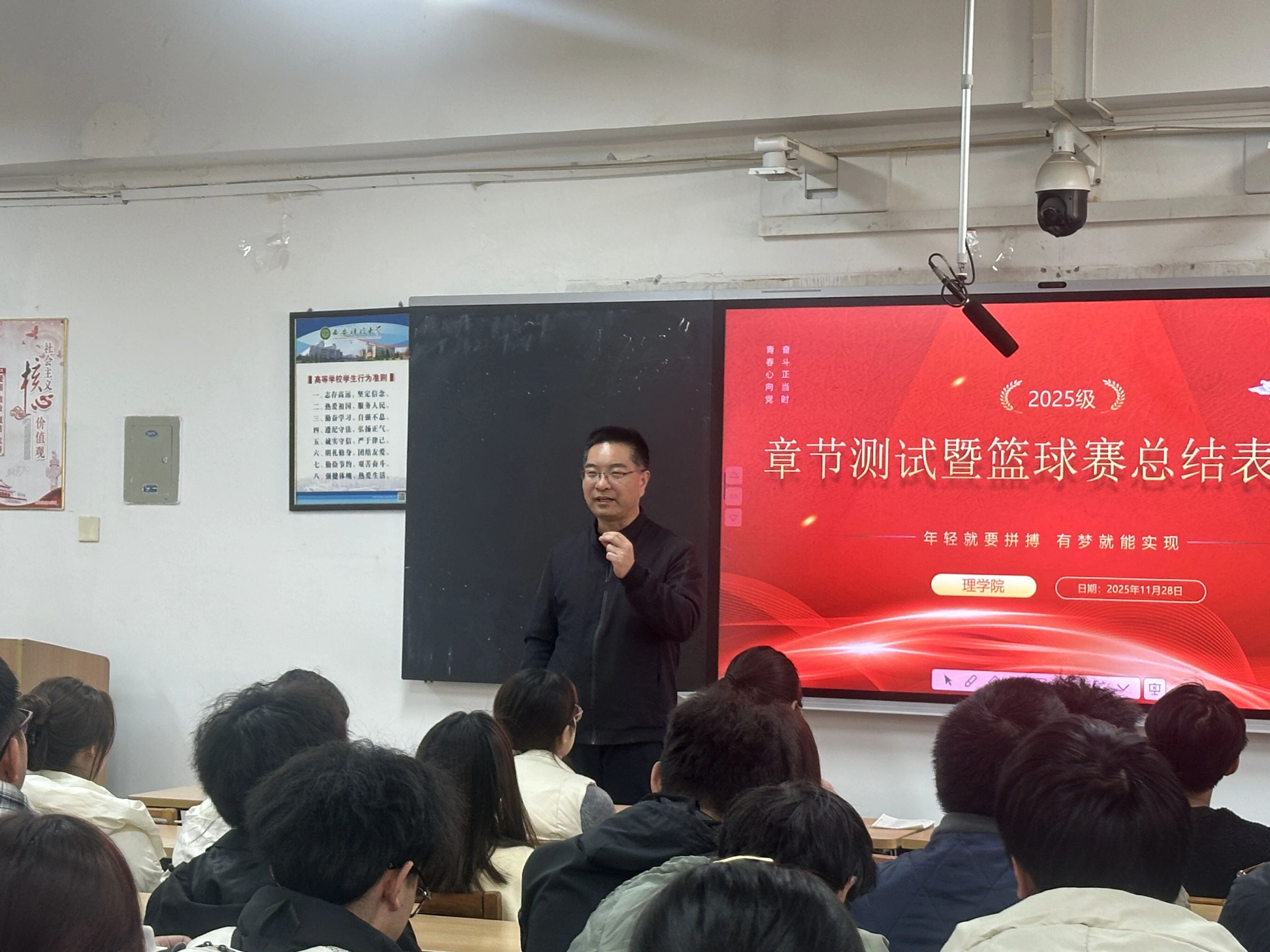 为全面检验阶段性学习成果,并增强年级凝聚力与集体荣誉感,11月28日,太阳成集团tyc122cc于3-513教室顺利举办2025级章节测试暨篮球赛总结表彰会。会议由2025级辅导员段佳主持,公司党委副书记陈伟伯及2025级全体本科生共同参与。