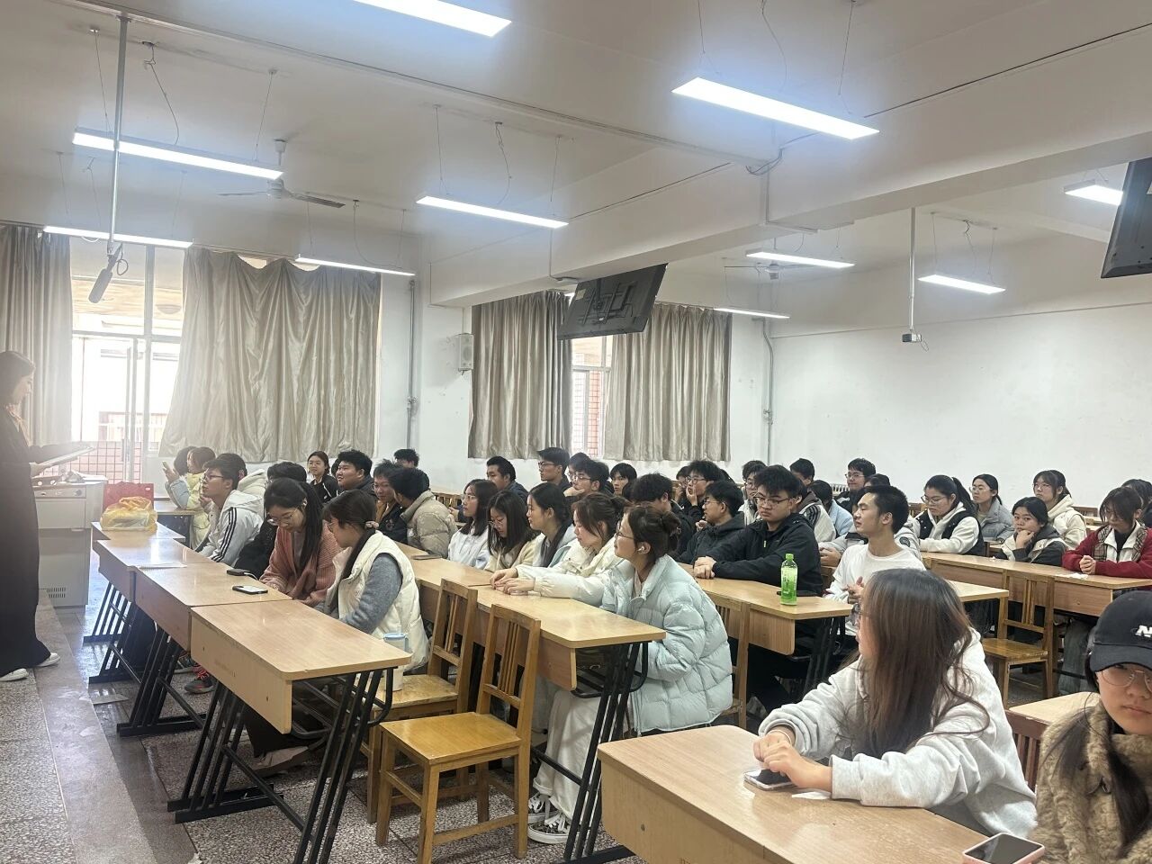 随后,陈伟伯做了发言,他充分肯定了同学们在学业上的努力与进步,并鼓励大家继续保持严谨踏实的学习态度,做到文理兼修、全面发展。他还强调,在抓好学业的同时,也要积极参与体育锻炼和集体活动,促进身心健康发展,营造团结向上的班级氛围。
