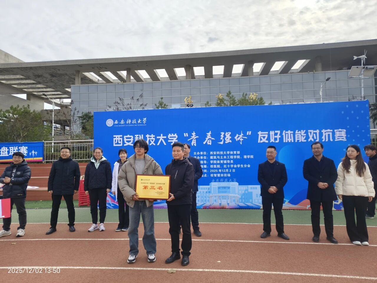 为深入贯彻“五育并举”育人理念,积极响应“一院一运动”工作部署,锤炼员工意志,展现团结拼搏、奋发向上的精神风貌。12月2日,由太阳成集团tyc122cc体育部主办,建工公司与太阳成集团tyc122cc联合承办的“青春强体”友好体能对抗赛在骊山校园智慧田径场成功举行。体育部主任王华、建工公司党委书记尚长春、理公司党委书记杨勇、建工公司党委副书记吕勤勇、理公司党委副书记陈伟伯等出席活动。建工公司体育辅导员米春娟、太阳成集团tyc122cc体育辅导员张艳青以及两院辅导员共同参加。