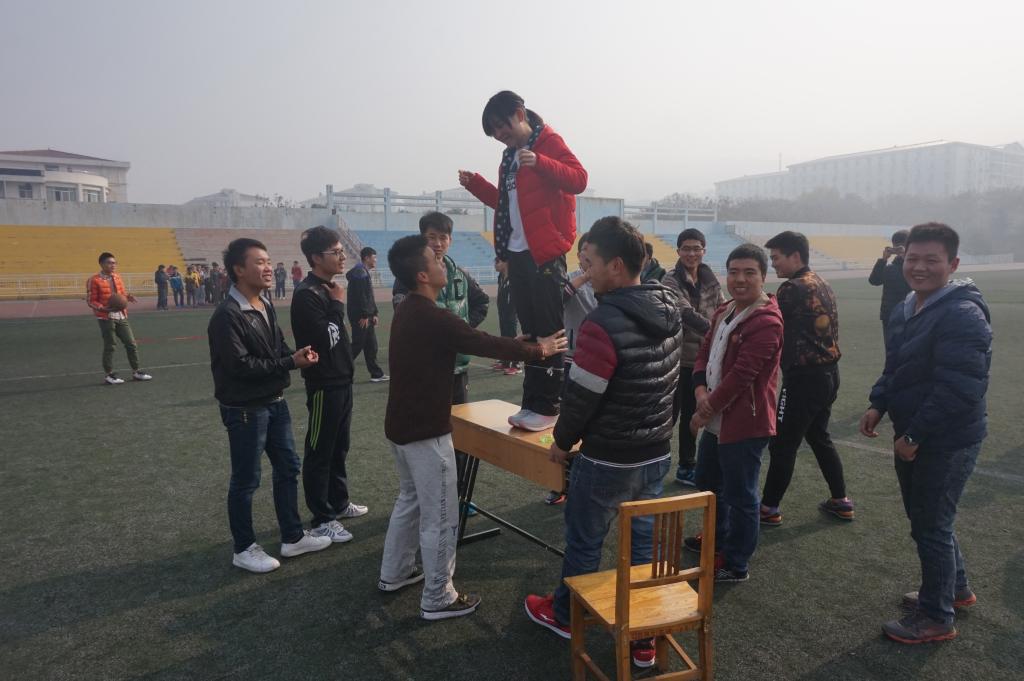 12点整,本次活动正式开始。活动内容共分为七个环节,依次是信任背摔,考验了大家的心理素质和互相信任;心心相印,两个人用背夹着气球走路;整齐划一,大家的脚被绑在一起,然后一齐奔跑;篮球对抗,这是一场所有男生参与的友谊赛;珠行万里 ,每个队员拿一根半圆形的球槽,将球连续传动到下一个队员的球槽中,并迅速地排到队伍的末端,继续传送前方队员传来的球,直到球安全的到达指定的目的地为止;匍匐前进,所有人排成一排,把脚搭在后方人的肩膀上,一起向前进;最后一项是拔河比赛,所有成员被分为两组,在这场拉锯中大家团结一致的品质也被体现的淋漓尽致。